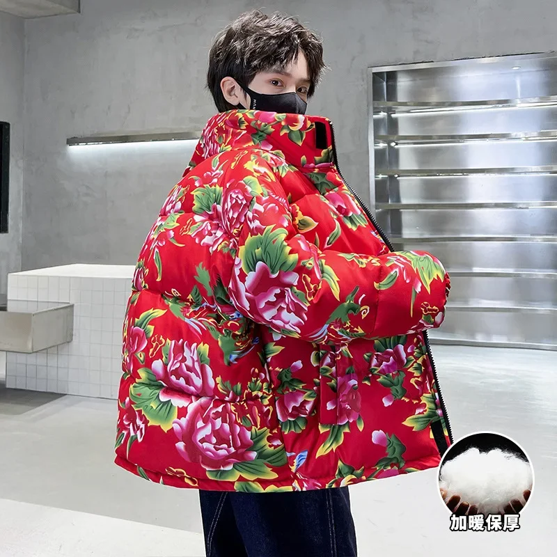 Comprar Chaqueta de flores grandes del noreste, nueva chaqueta de algodón de invierno para niños y niñas, ropa cálida de algodón con flores grandes