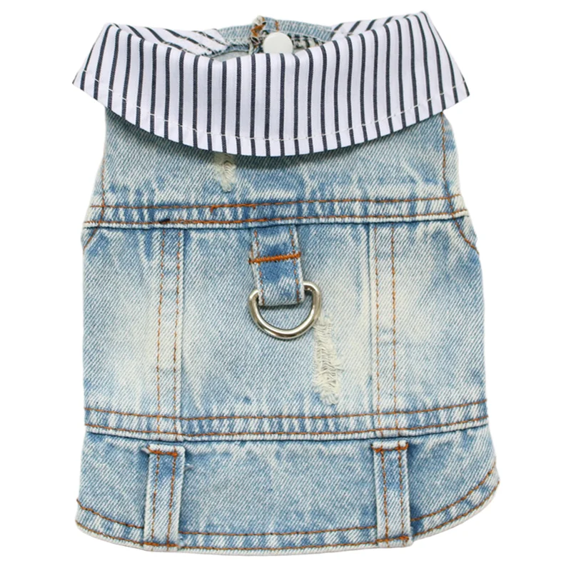 Dog Jean Jacket for Small Medium Dogs Cats Boys Girls Pet Outfits Distressed Denim Vest for Shih Tzu Chihuahua Yorkie Teacup