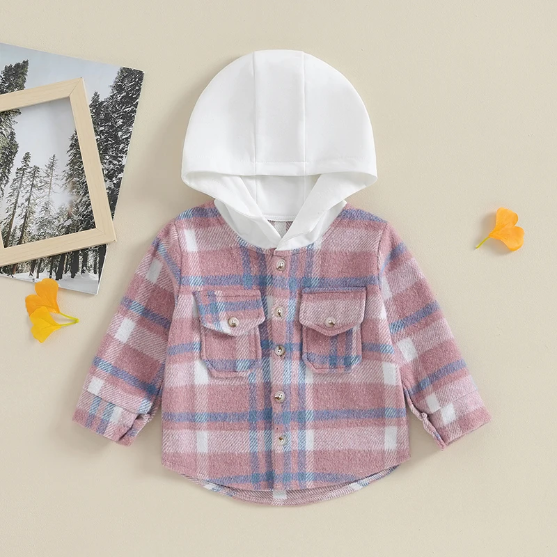 Comprar Chaquetas con capucha para niños y niñas, abrigo informal de manga larga con botones, ropa de abrigo a cuadros con bolsillos, primavera y otoño