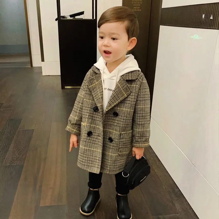 Chaquetas de rejilla de invierno para niños y niñas, gabardina de lana con doble botonadura para bebé, abrigo con solapa para niños, abrigos, abrigo de lana, abrigo de invierno