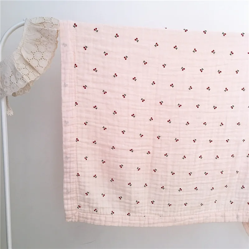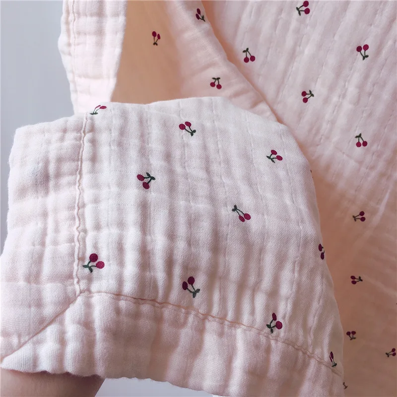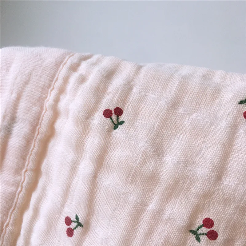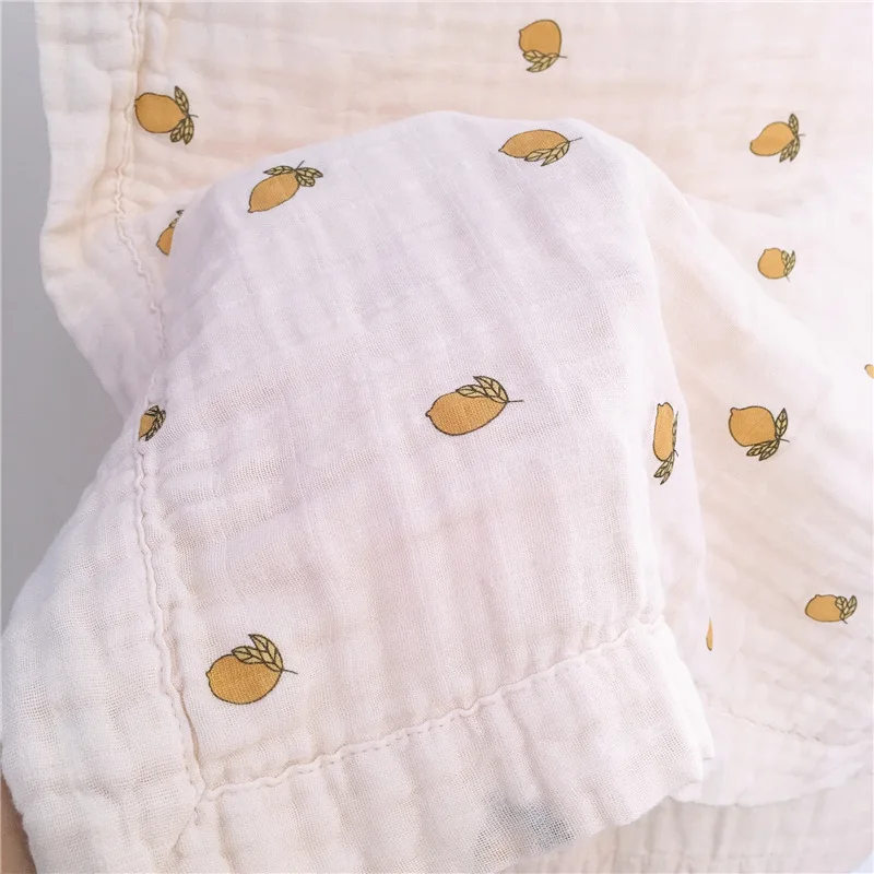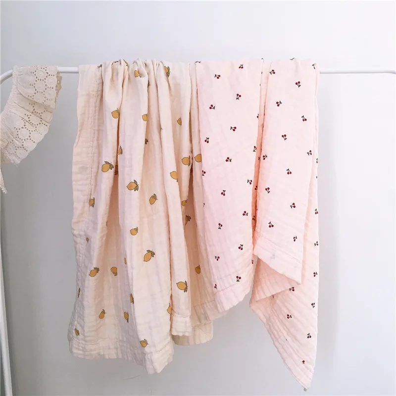 Cherry Lemon Floral Printed Cotton Muslin Newborn Baby Swaddle Blanket 4-Layer Gauze Infant Wrap Bedding Blankets Quilt Cover