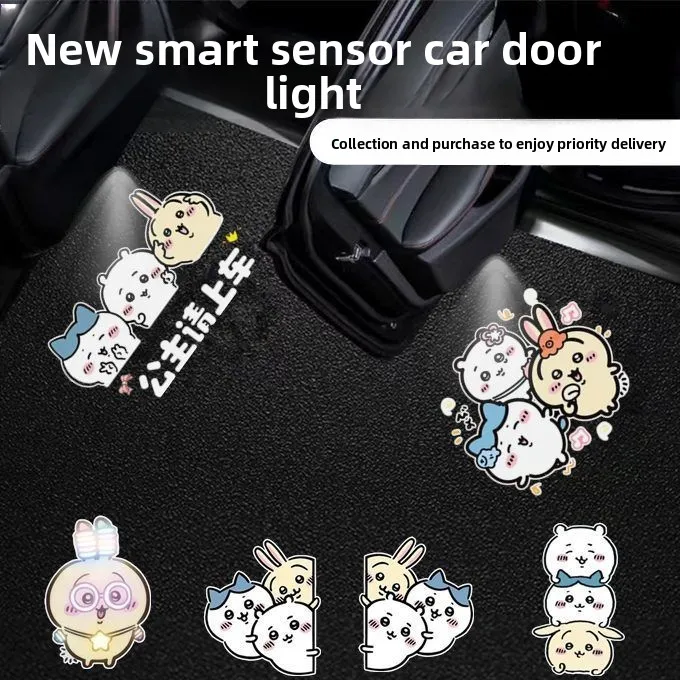 Chiikawa-luz LED ambiental de dibujos animados para puerta de coche, guía de luz decorativa, luces de ambiente bonitas, lámpara decorativa para coche DIY, regalos