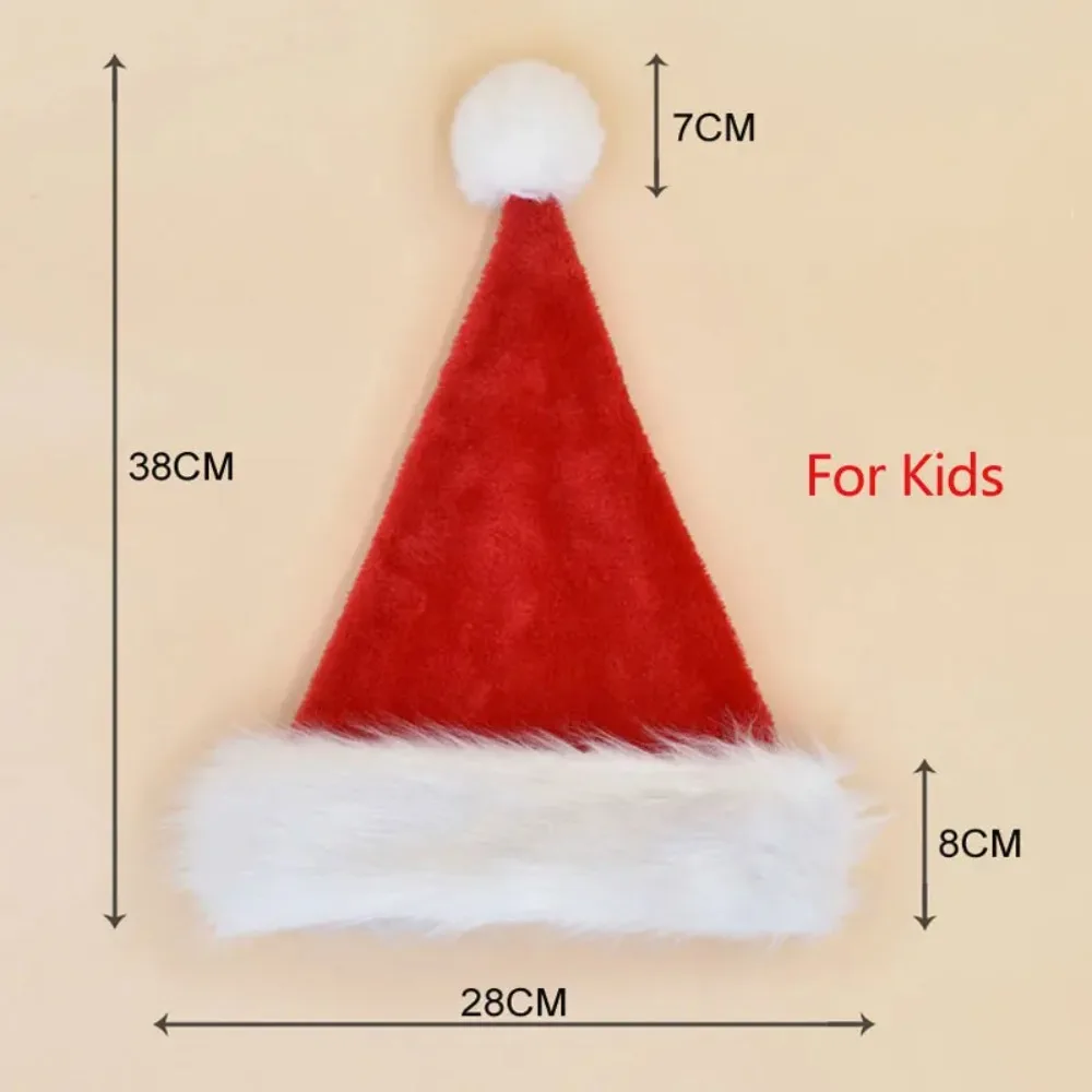 Alta calidad, suave y cómodo: el gorro de Papá Noel hecho de felpa de alta calidad, el gorro de Papá Noel con forro de diseño grueso puede mantener el calor en el frío.Tela suave y cómoda para proteger la cabeza y el cabello sin irritación ni sudor y sin sensación de picazón, lavable a mano, no alérgico y ecológico.