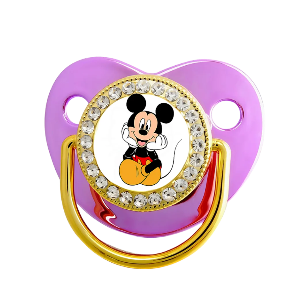 Chupete y gorro ostentosos para bebé, chupete de silicona sin BPA con diamantes de imitación para bebés de 0 a 6 meses para masticar pezones
