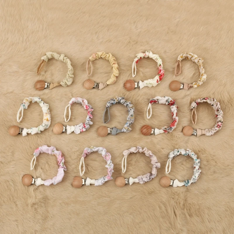 Chupete de lino y algodón para bebé, cadena de Clip, Clips de madera de haya, soporte para chupete infantil, juguetes de dentición, soporte para pezones para alimentación de bebé