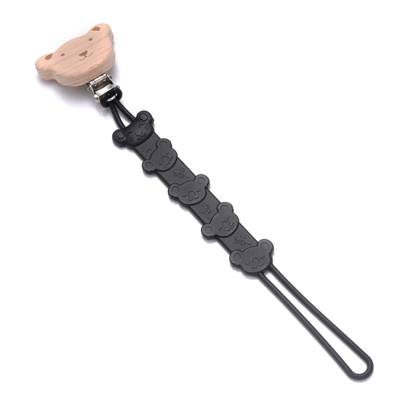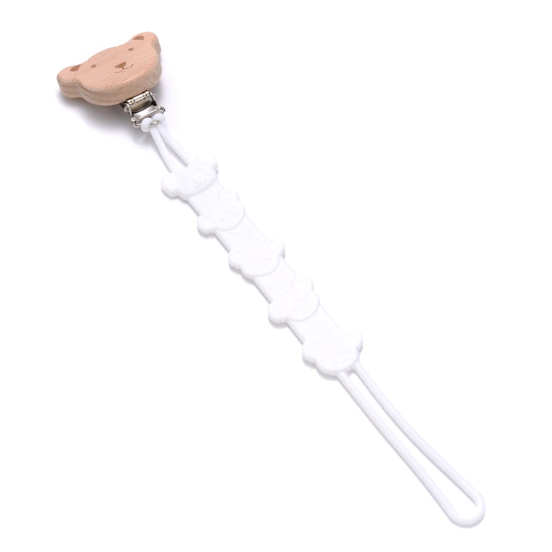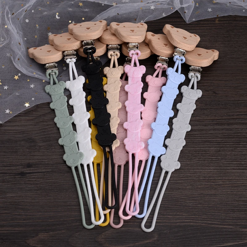 Chupete de madera de animales de dibujos animados para bebé, mordedor de silicona, soporte para pezón, cadena anticaída, juguete para masticar, cuidado bucal