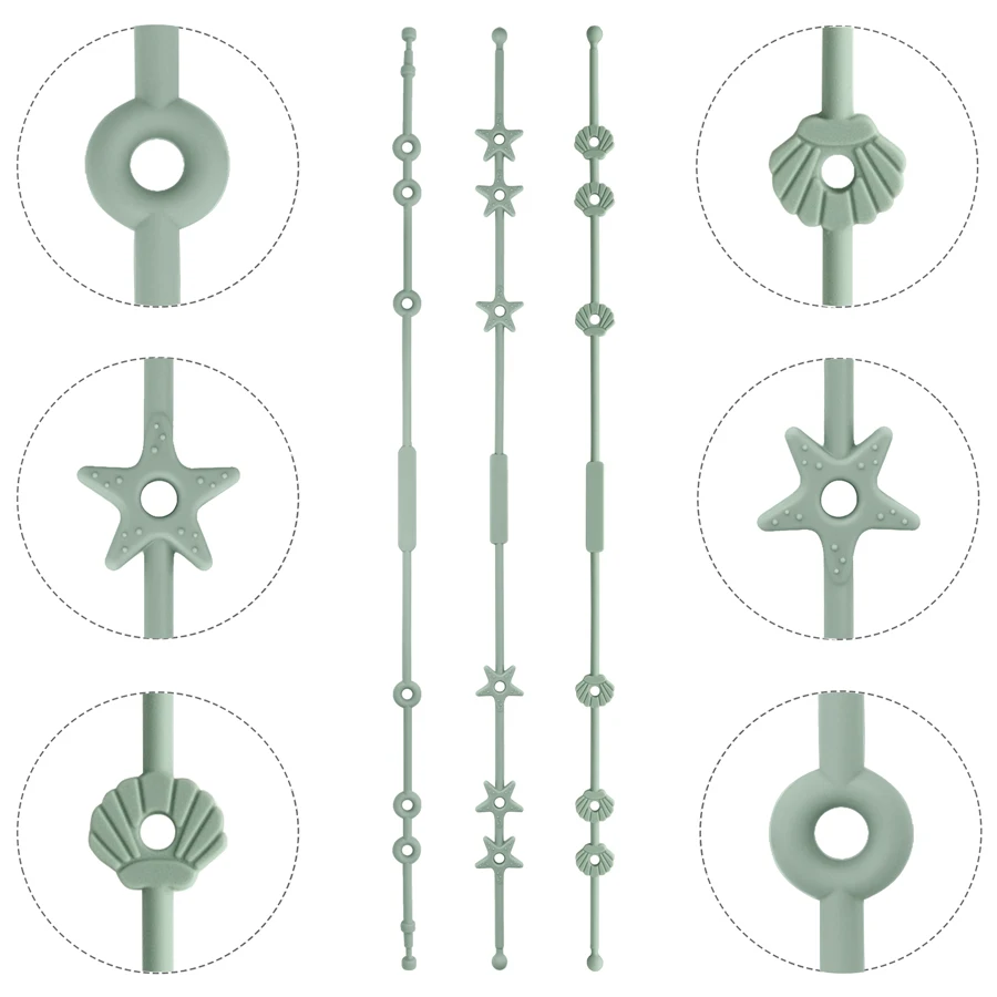 Color Kids 3PC Clips de chupete de silicona Cadena de chupete de color sólido Juguetes de dibujos animados para bebés Esenciales ajustables para bebés Regalo suave para bebés