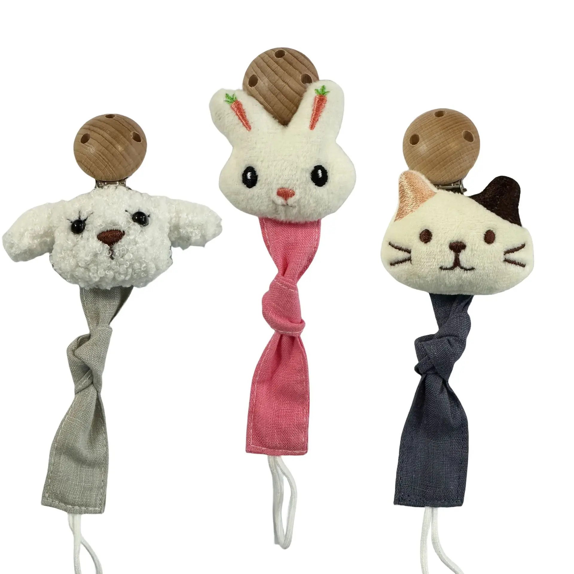 Chupete de tela de 21cm para bebé, cadena con Clip de algodón, soporte de estilo campestre de dibujos animados, hecho a mano, regalo de Navidad para niñas, venta al por mayor