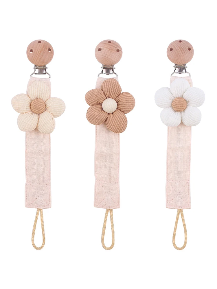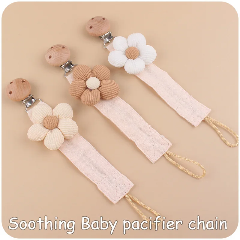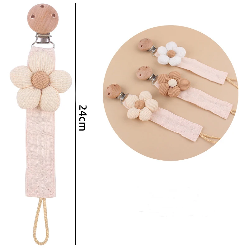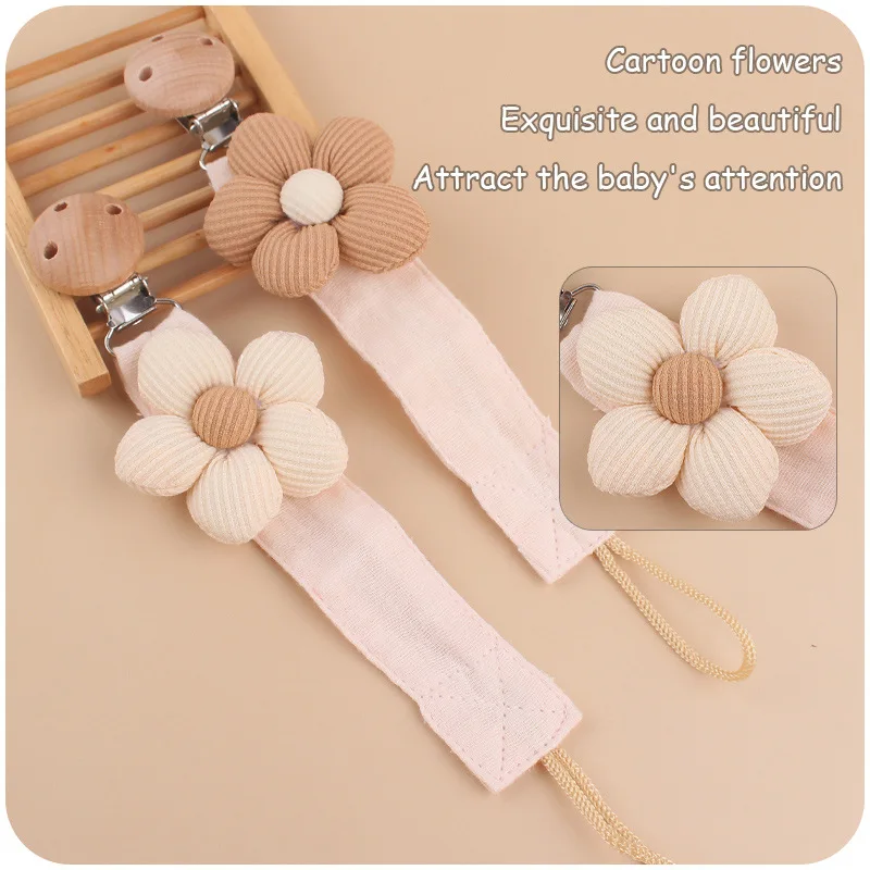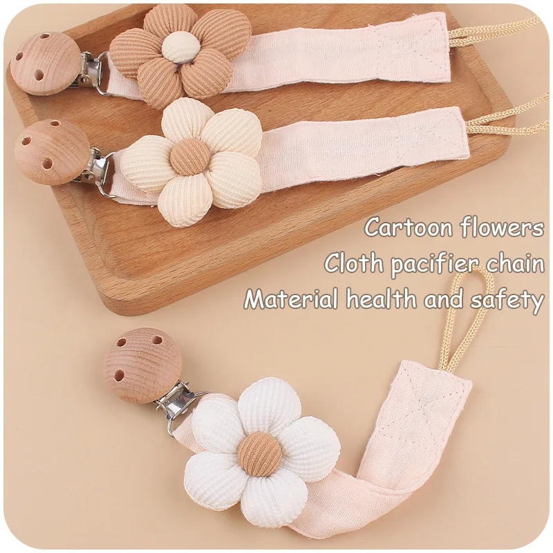 Chupetes infantiles con flores de dibujos animados, cadena para bebés y niños, Clips para chupete de madera de haya, soporte para pezones anticaída, accesorios