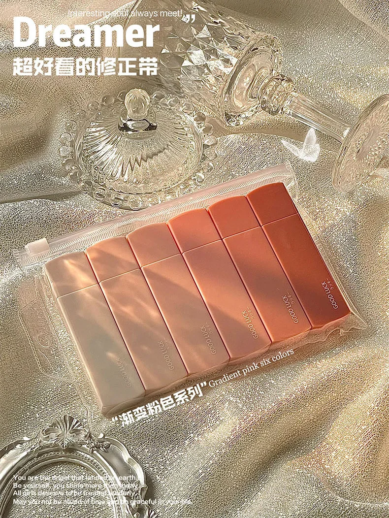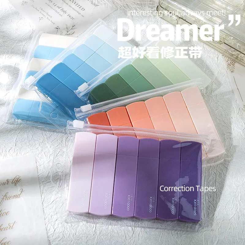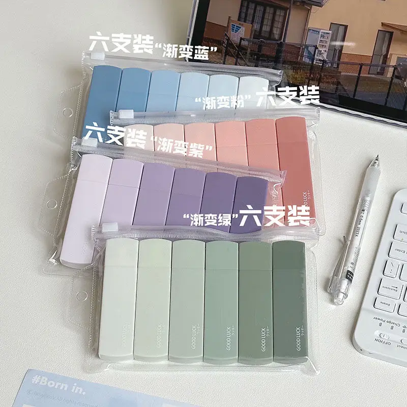 Cinta de corrección portátil de Color Macaron, gradientes, Forma cuadrada, silenciosa, sin seguimiento, suministros de oficina escolar, regreso a la escuela, 6 piezas por juego