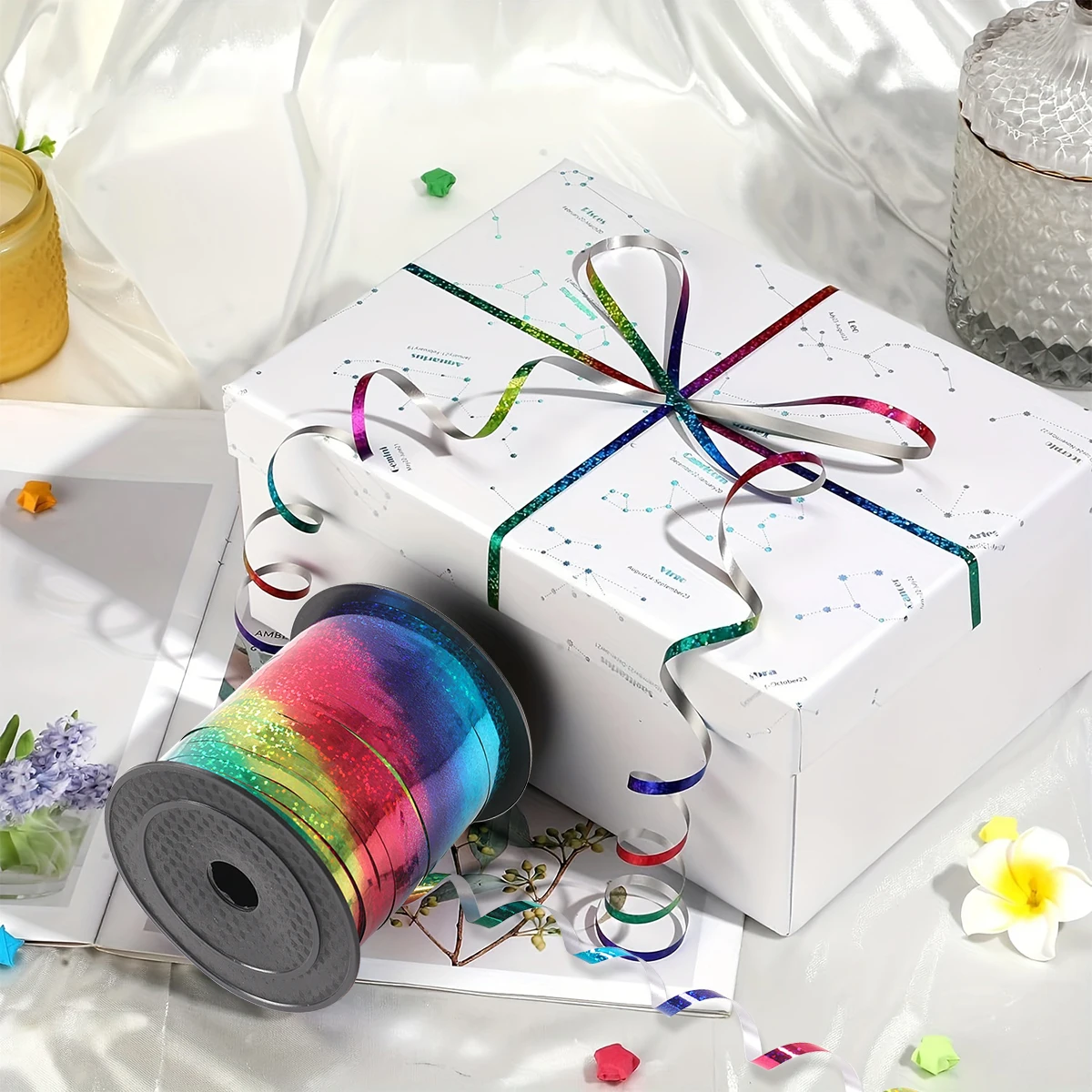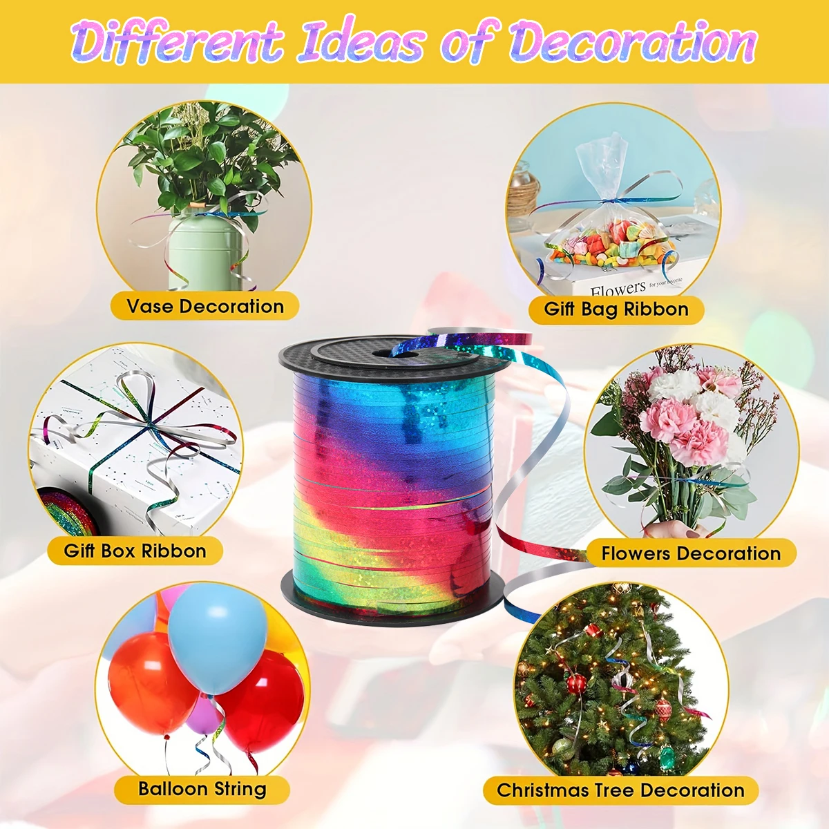Comprar Cinta láser de arco iris, decoraciones para fiestas de cumpleaños de boda, regalos, regalos, cuerda de globos, cinta Curling brillante metálica