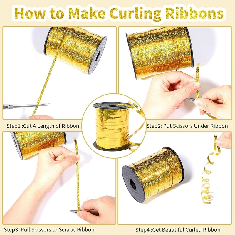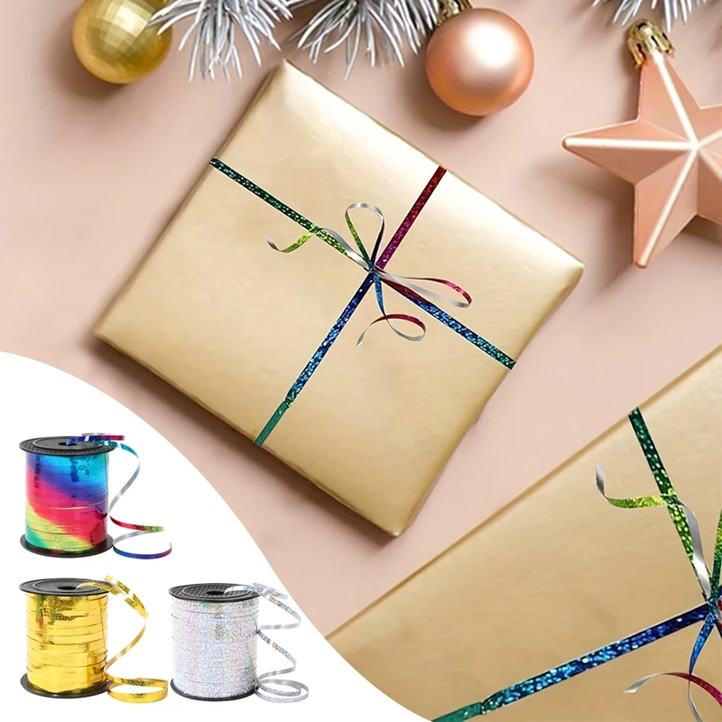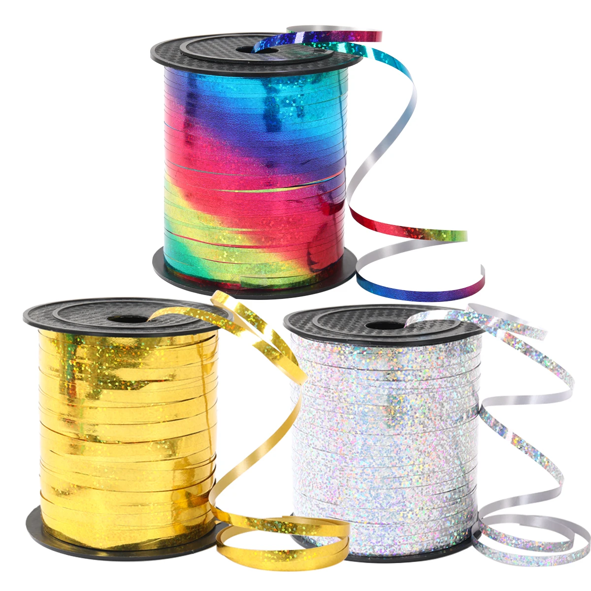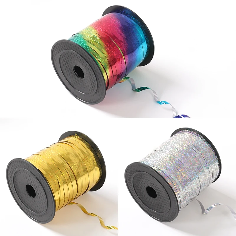 Comprar Cinta láser para decoración de fiesta, regalos de cumpleaños, decoración de boda, cinta de satén rizada, accesorios DIY, 1 ud.