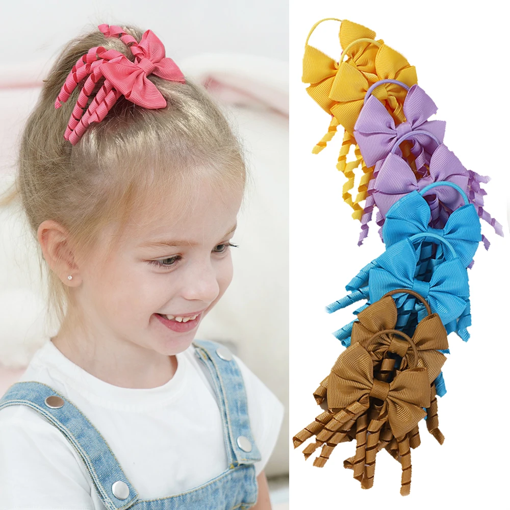 Comprar Cinta para la vuelta al colegio para niñas, lazo para el pelo rizado con lazos, diademas elásticas de cuerda, coleta para niños, accesorios para el cabello con lazo