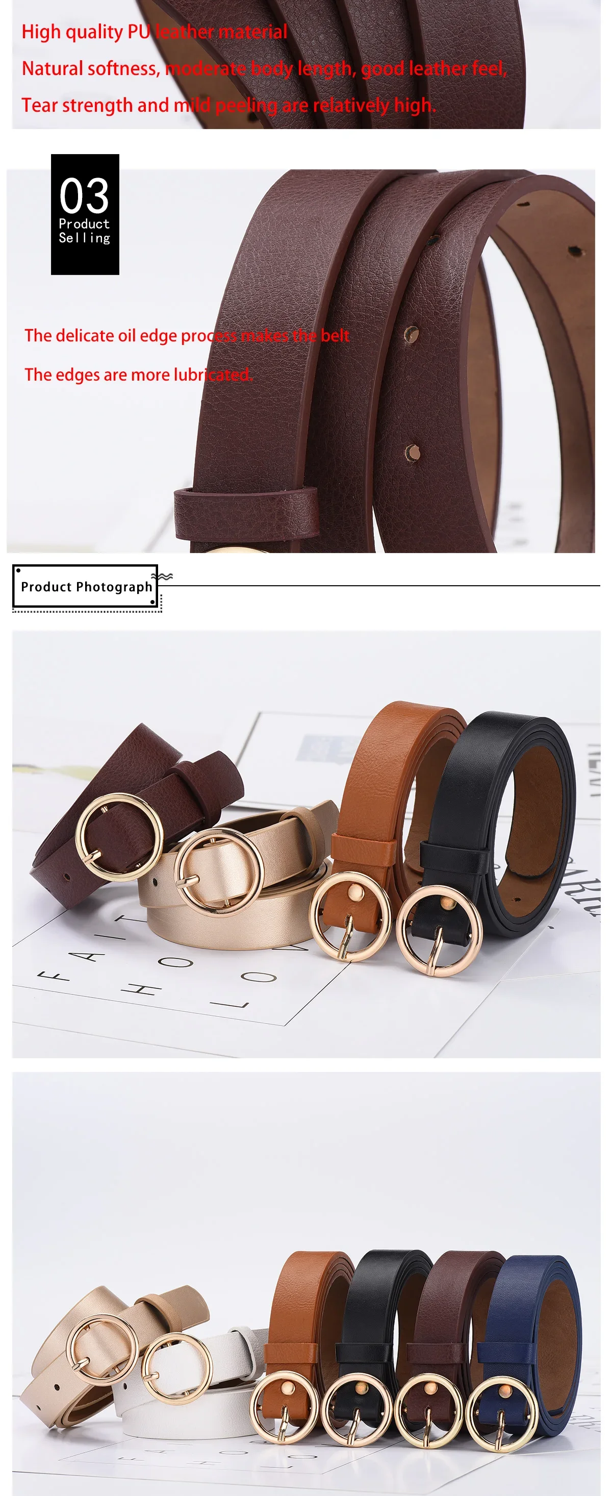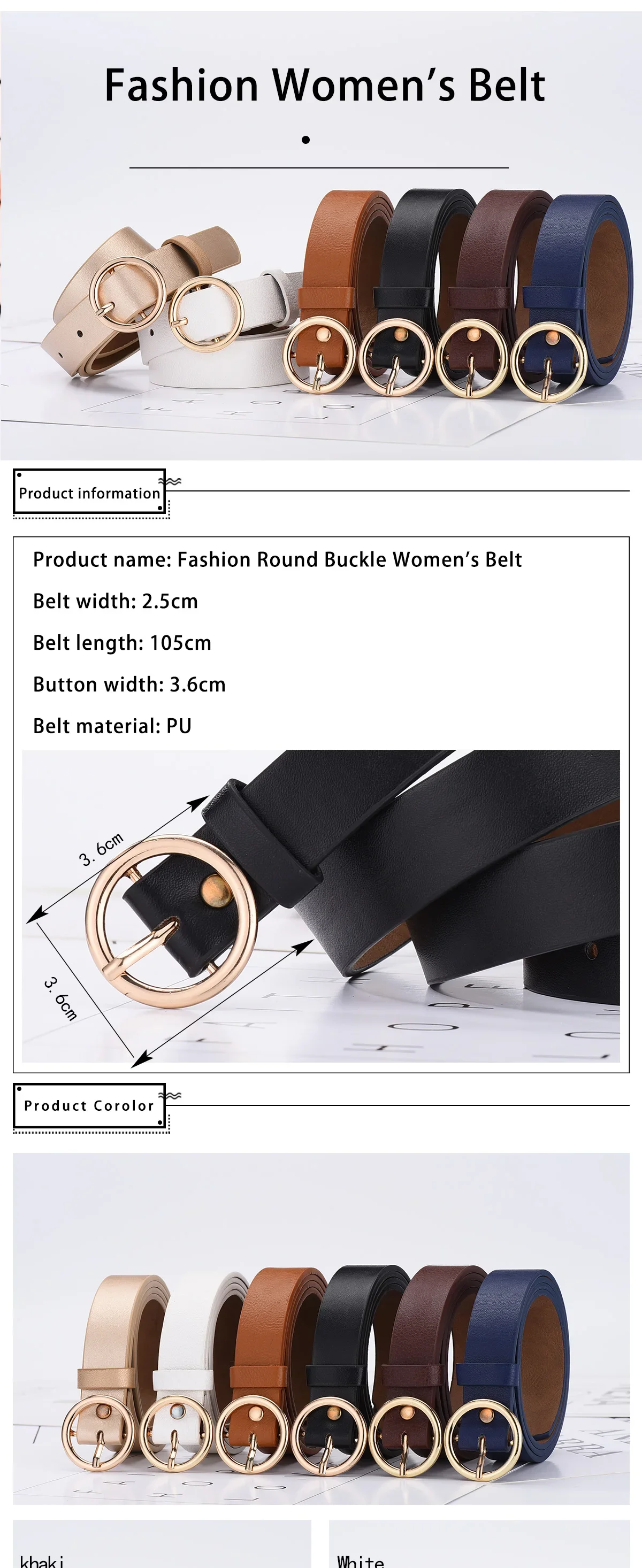 Cinturón de moda para mujer, cinturón de hebilla redonda con Jeans, pantalones Cargo, falda delgada, cinturón de Pu suave, cinturón barato, nuevo