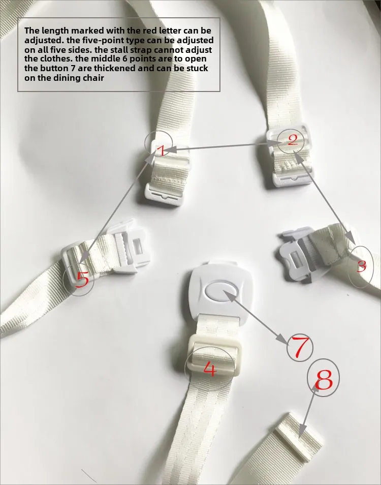 Adecuado para todo tipo de sillas de comedor domésticas para niños: bolsa\ beneng\ buen niño\ coyobi\ cuidado del bebé\ carrito\ sillas de comedor plegables de madera, etc., botones de cinco puntos, se pueden ajustar la longitud, el ancho de la correa es 2,5 cm. Hay hombreras y riñoneras que se pueden combinar.