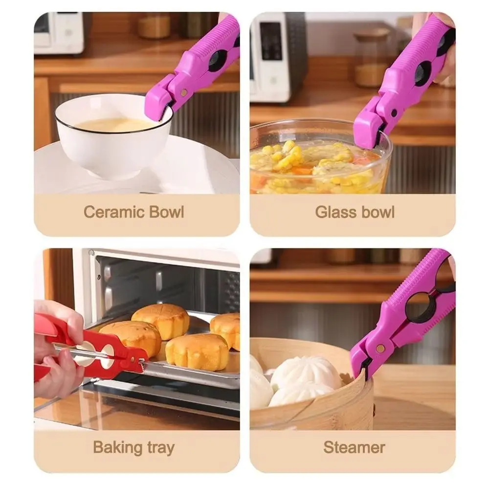 Versatile Kitchen Gadget: This multi-purpose bowl holder clip serves as an essential kitchen tool for handling hot cookware and dishes, providing a convenient solution to prevent scalds and burns while cooking or serving food.