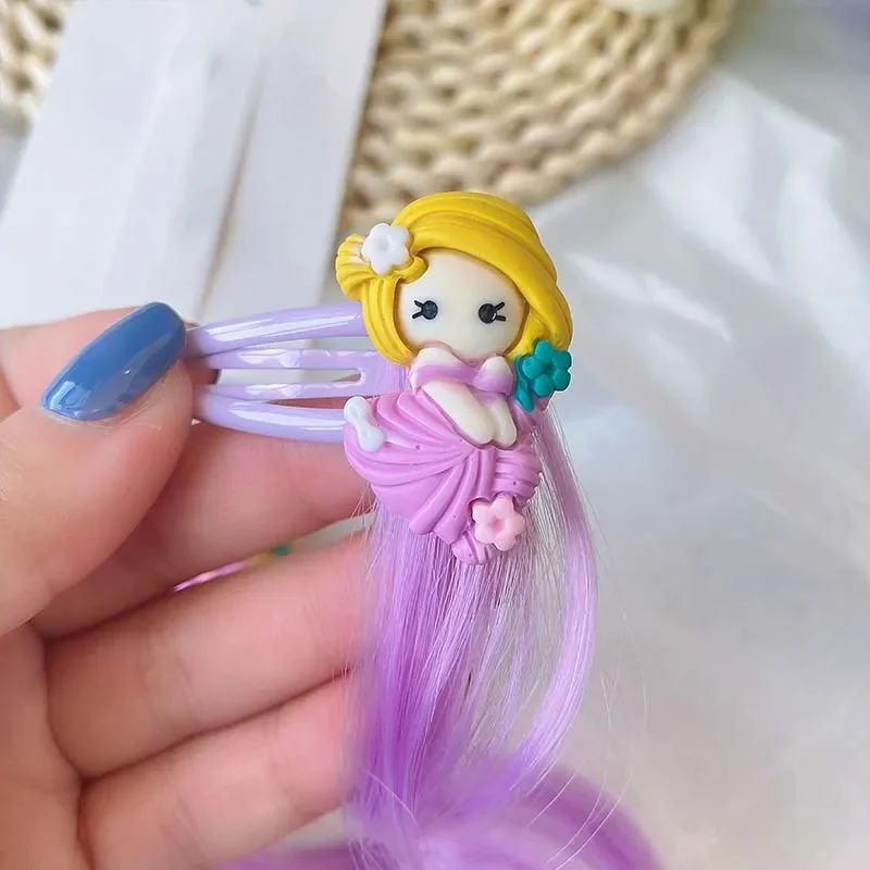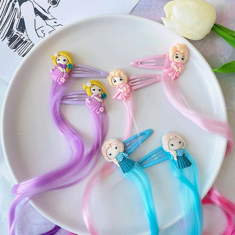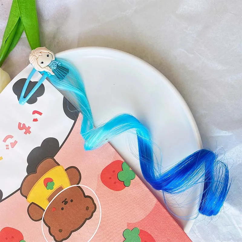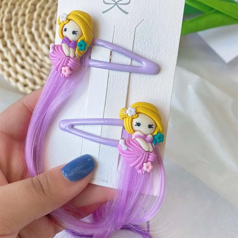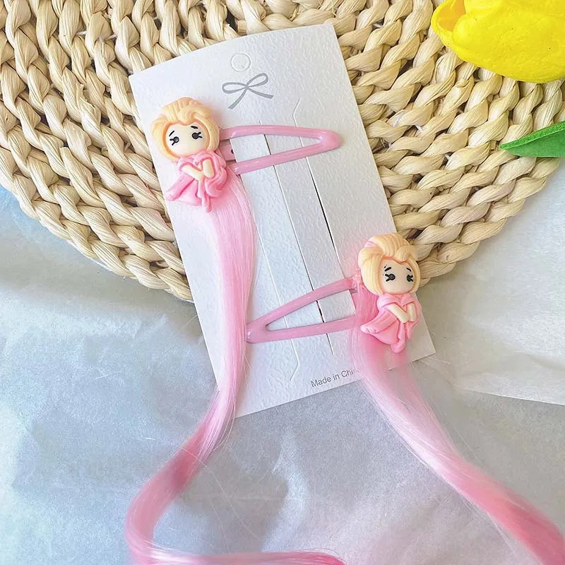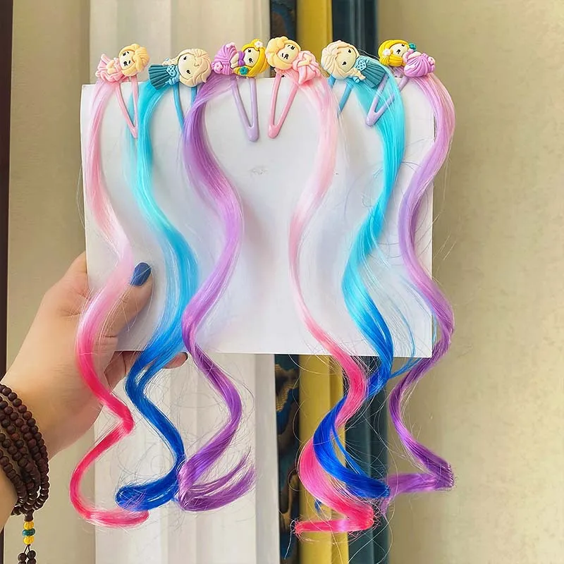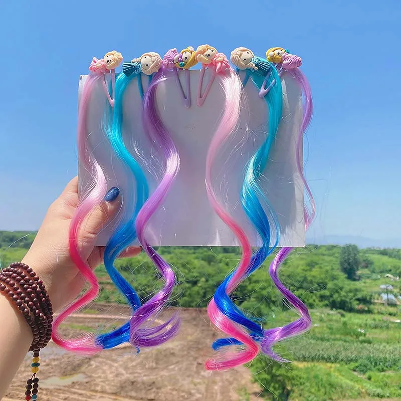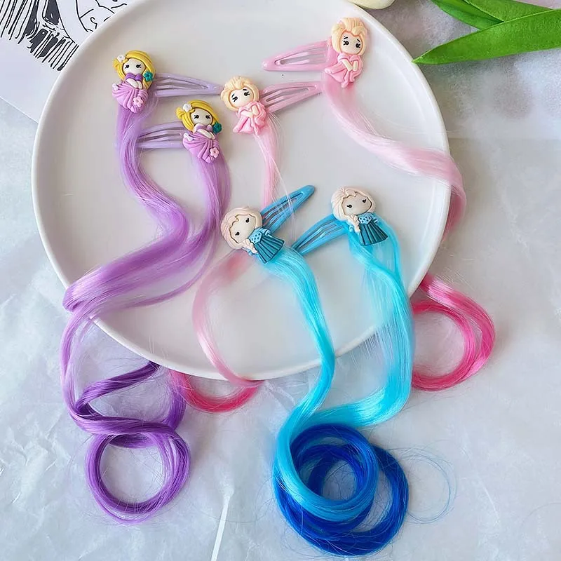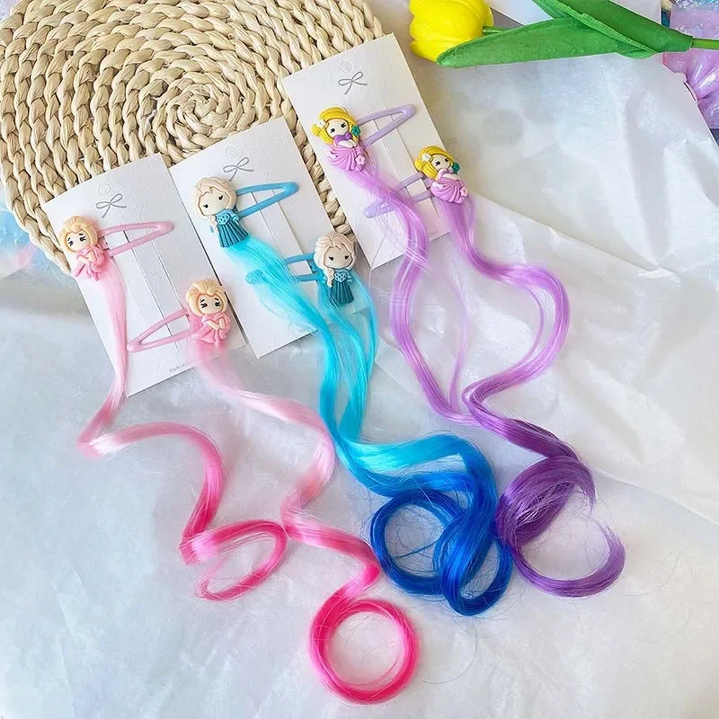 Clip BB de dibujos animados para niñas, horquilla de Color degradado de princesa, coleta de pelo largo y rizado, accesorios de moda