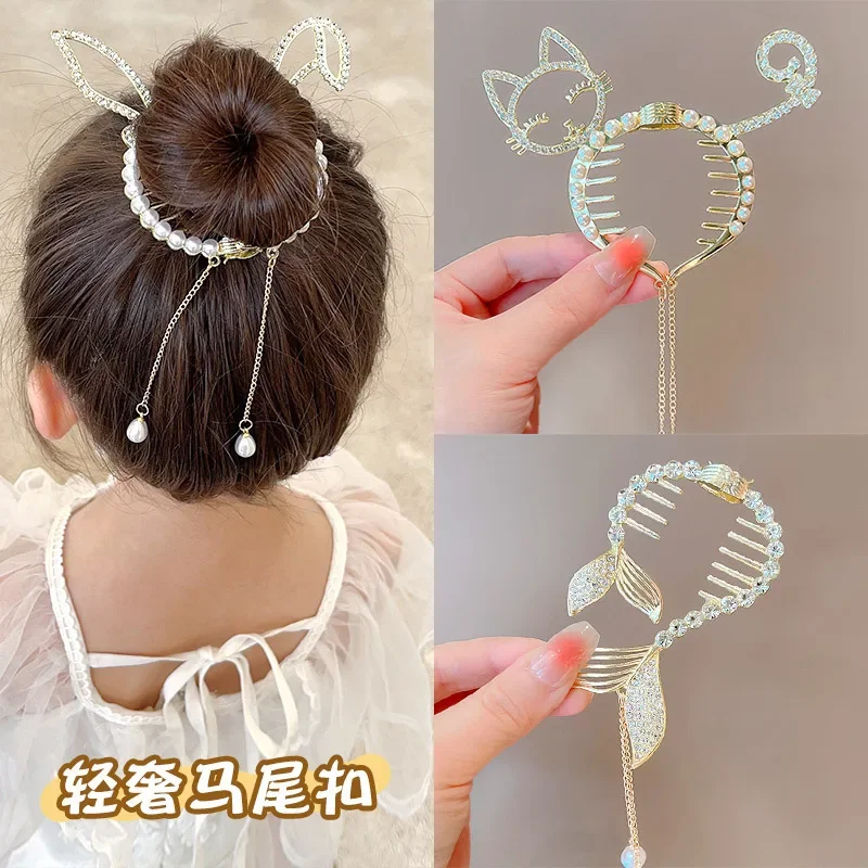 Comprar Clip con hebilla para el pelo para moño para niños, coleta para niña, accesorios para el cabello, tocado con temperamento para niña, hebilla para cola de caballo