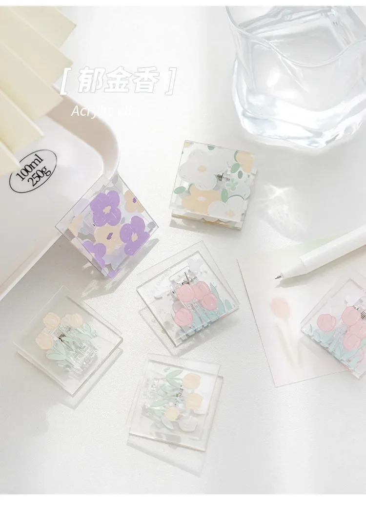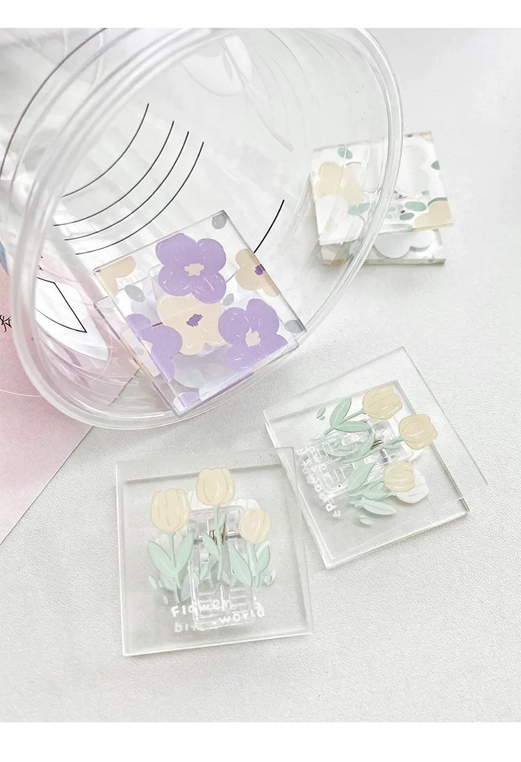 Comprar Clip de papel cuadrado de flores de tulipán, Clip de almacenamiento de papelería acrílica transparente, organizador de documentos de archivo de datos
