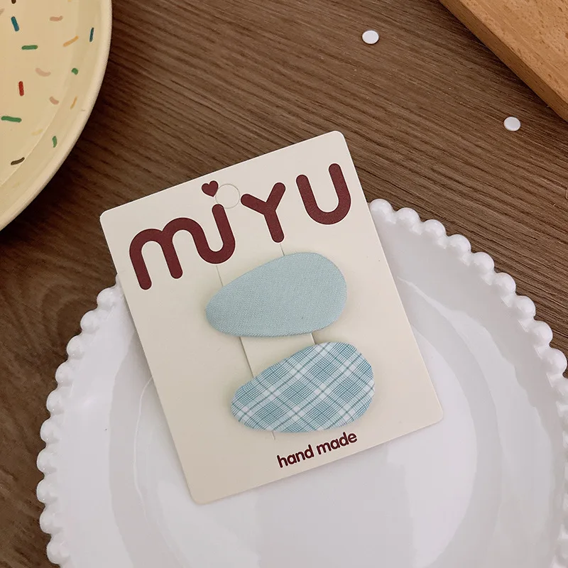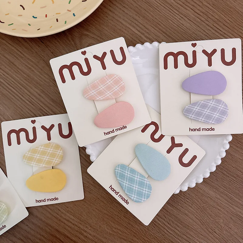 Clip de pelo con flequillo a cuadros para niños, tela de estilo coreano, gota de agua, versátil, dulce BB, horquillas con flequillo de color caramelo para bebé