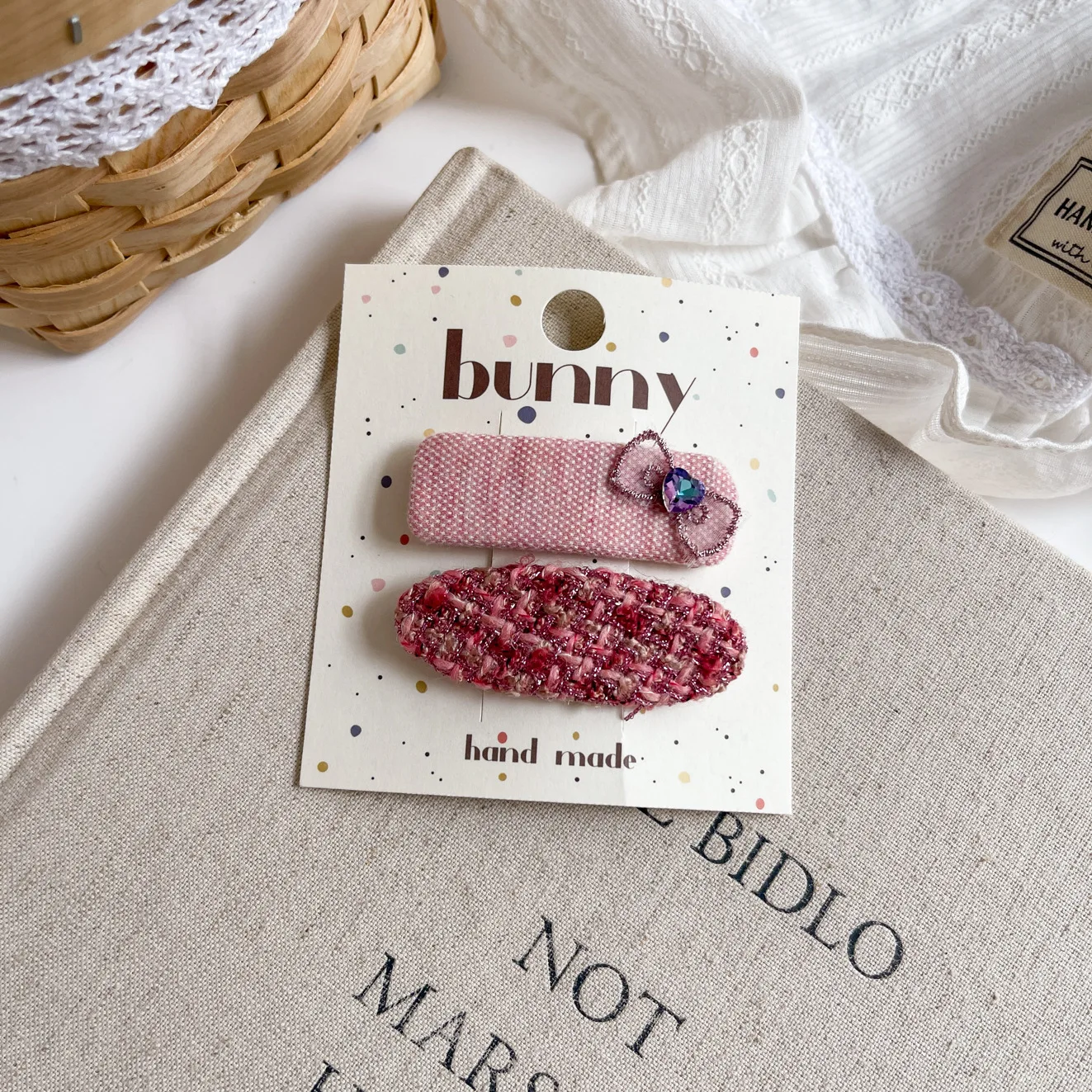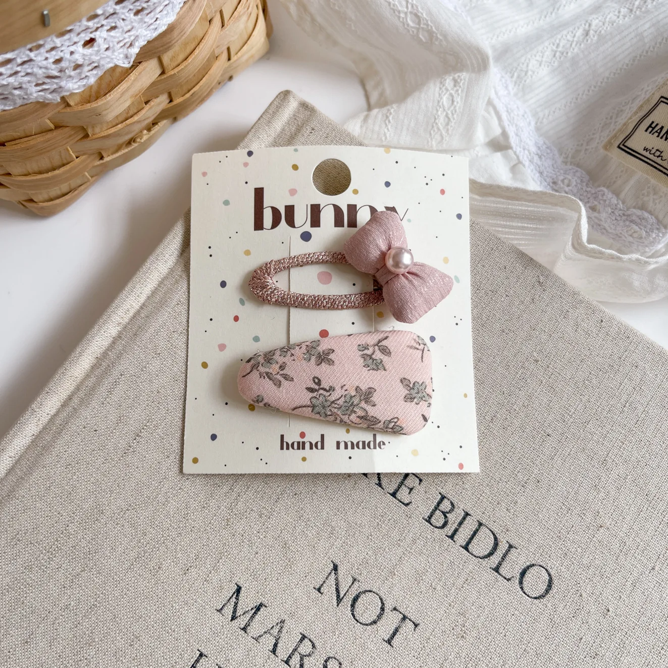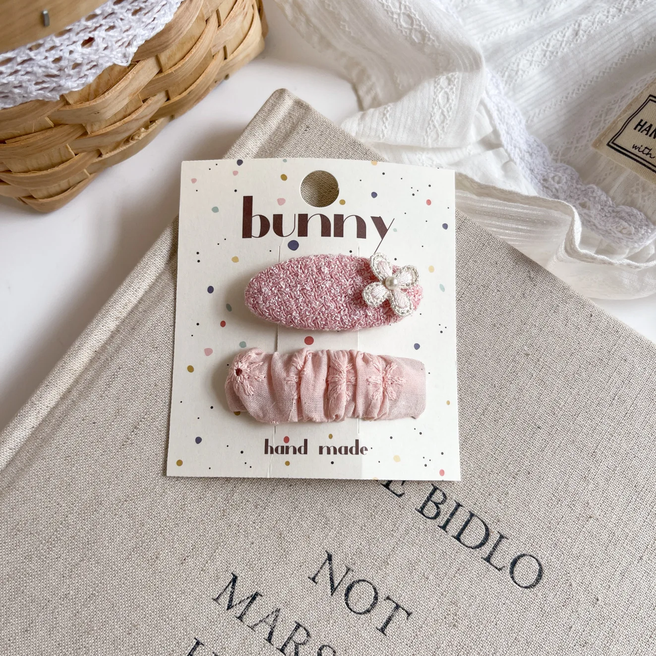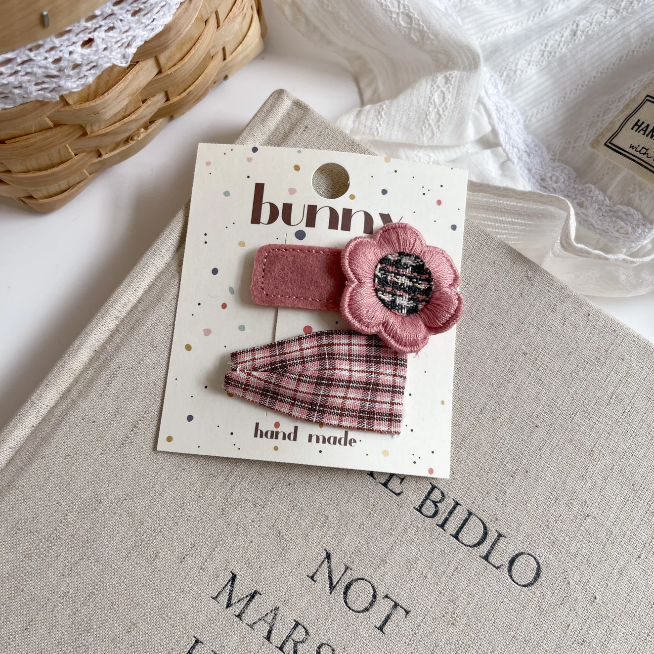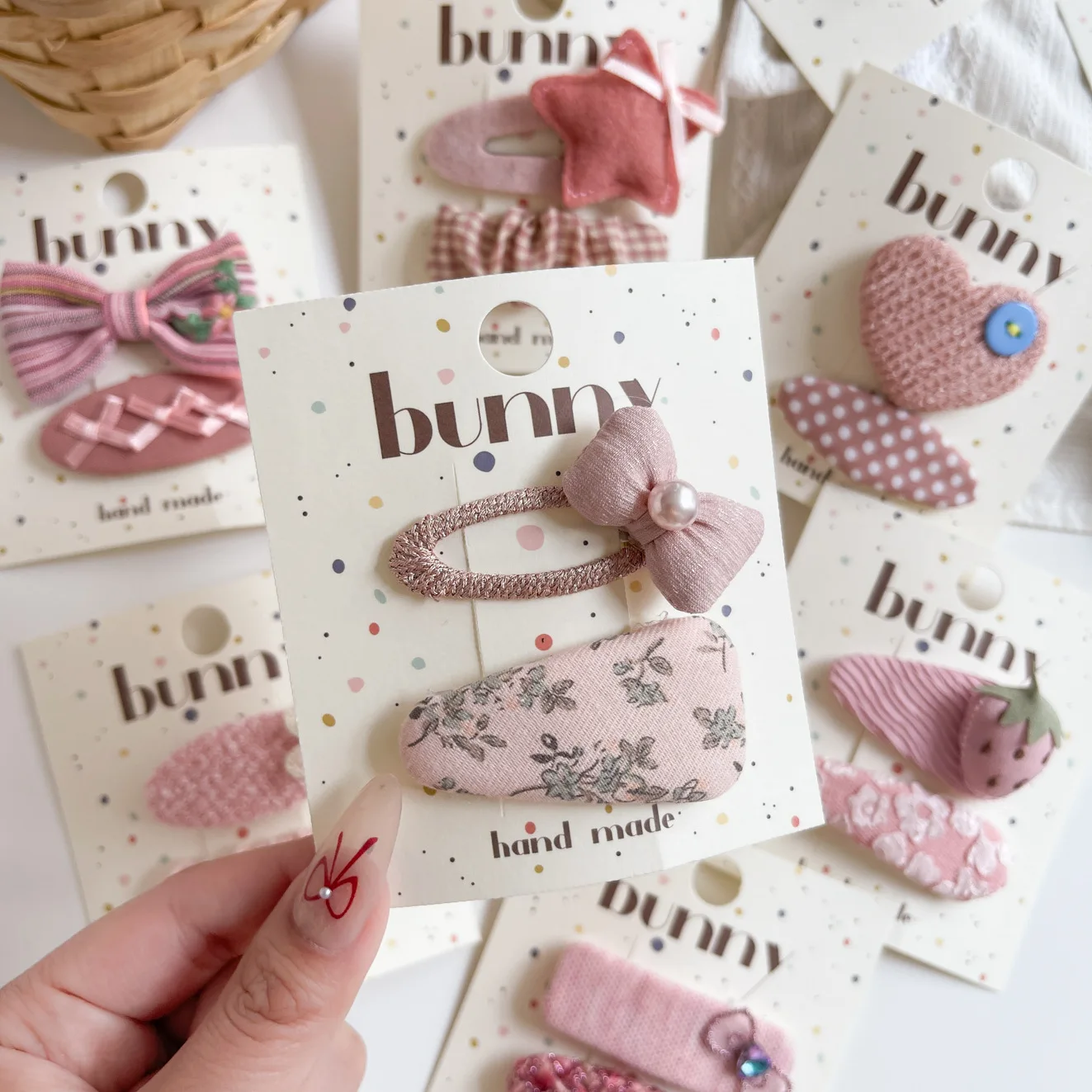 Clip de pelo geométrico rosa coreano para niñas, Clip BB de cabeza de princesa dulce de tela, Clip de peinado lateral para el cabello Floral de cinco estrellas para niños