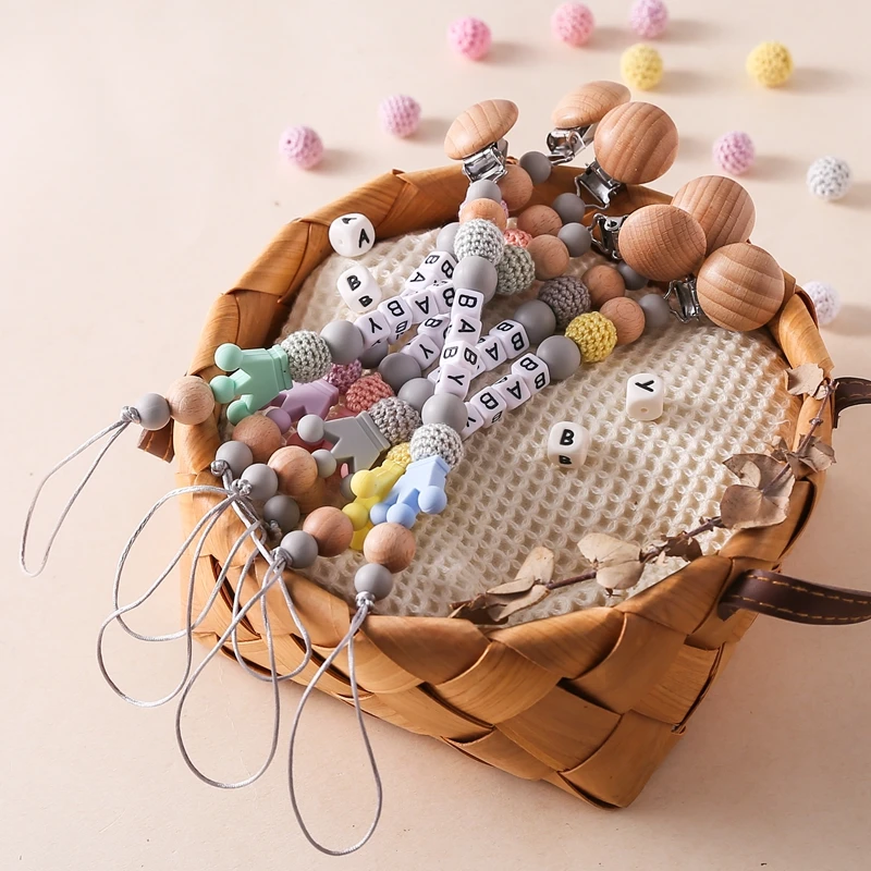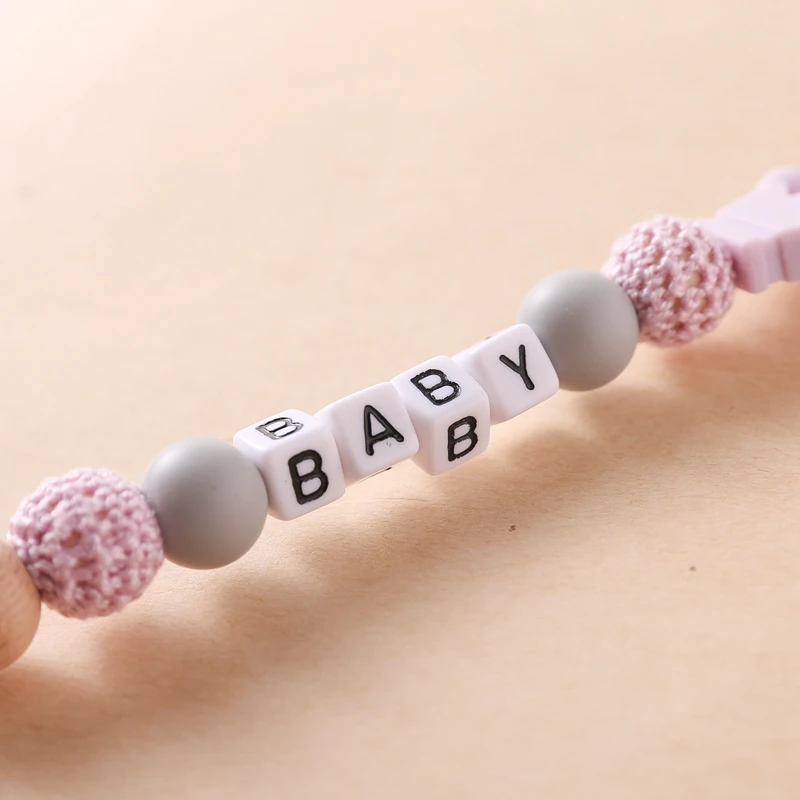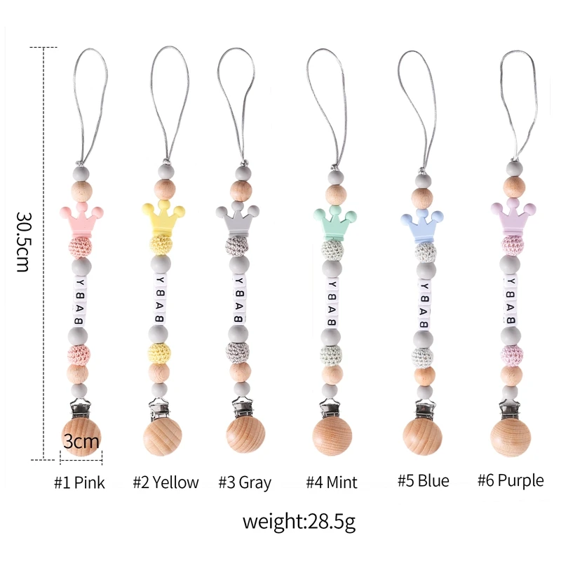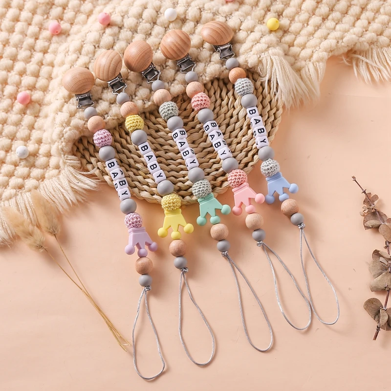 Clips para chupete de bebé con nombre personalizado, cadenas para mordedores, soporte para pezones, Clip de corona de silicona, accesorios para juguetes para la dentición recién nacido