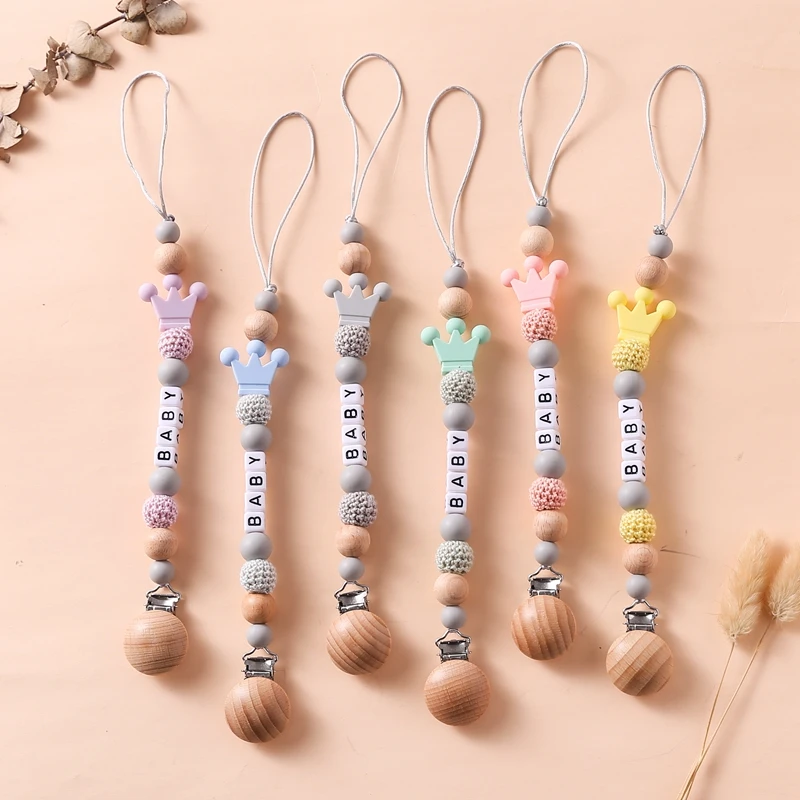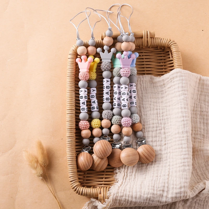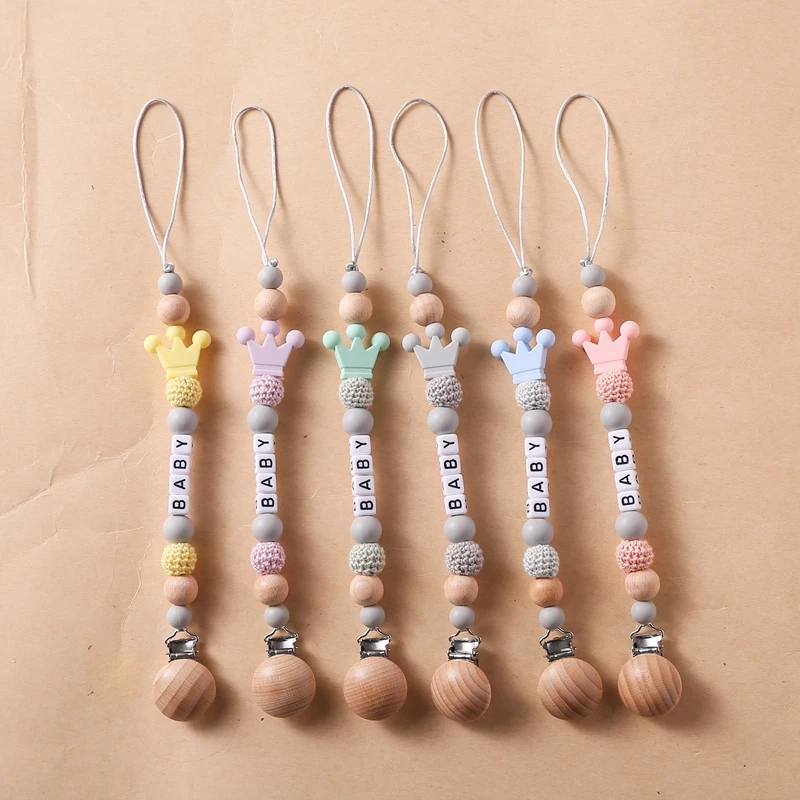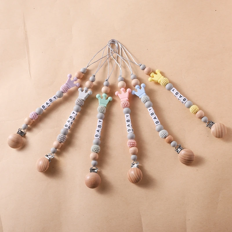 Clips para chupete de bebé con nombre personalizado, cadenas, mordedores, soporte para pezones, Clip de corona de silicona, accesorios de juguetes para la dentición para recién nacidos