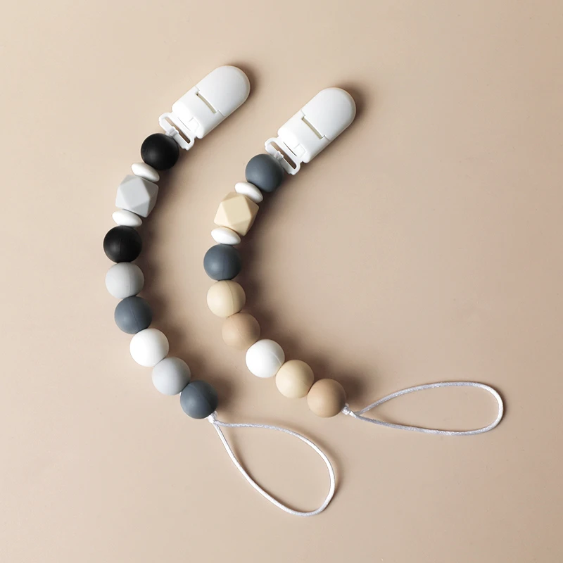 Clips para chupete de bebé, soporte de silicona con cuentas de dibujos animados, cadena de dentición, mordedor de silicona para bebé, cadena de chupete, juguetes para masticar de lactancia, 2 uds.