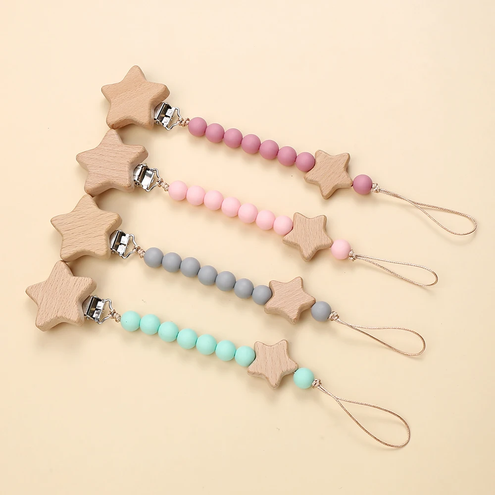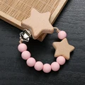 Comprar Clips de madera con nombre personalizado, cuentas de silicona, cadena para chupete de bebé, Clips para chupete, previene goteo y fugas
