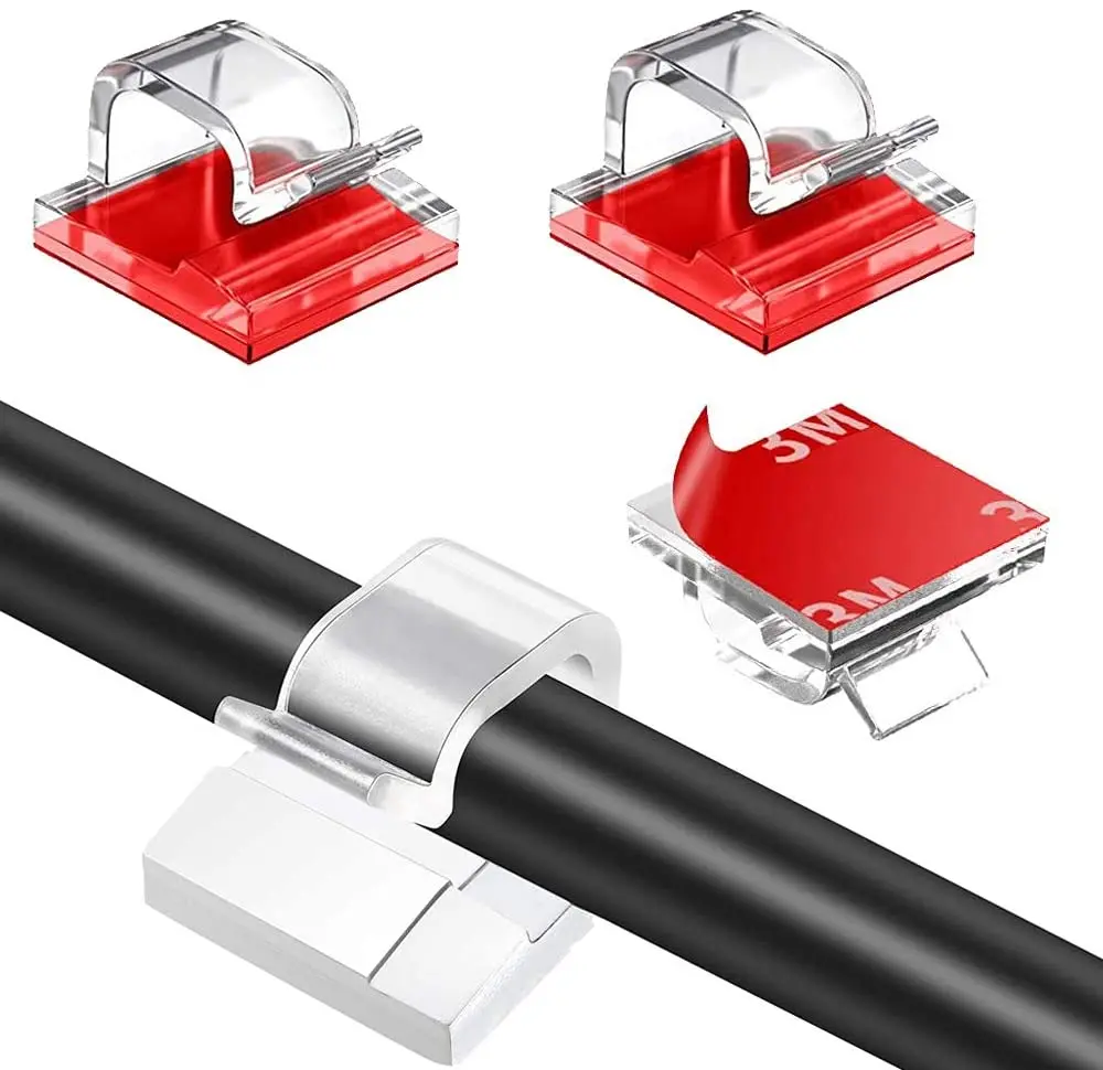 1.Material: el clip de fijación adhesivo está hecho de plástico y acrílico, con un respaldo transparente, que es muy pegajoso y se puede fijar en el escritorio y otras áreas que necesitan cables.organizado.