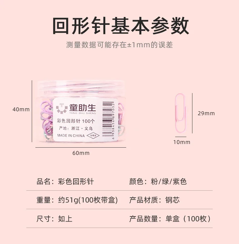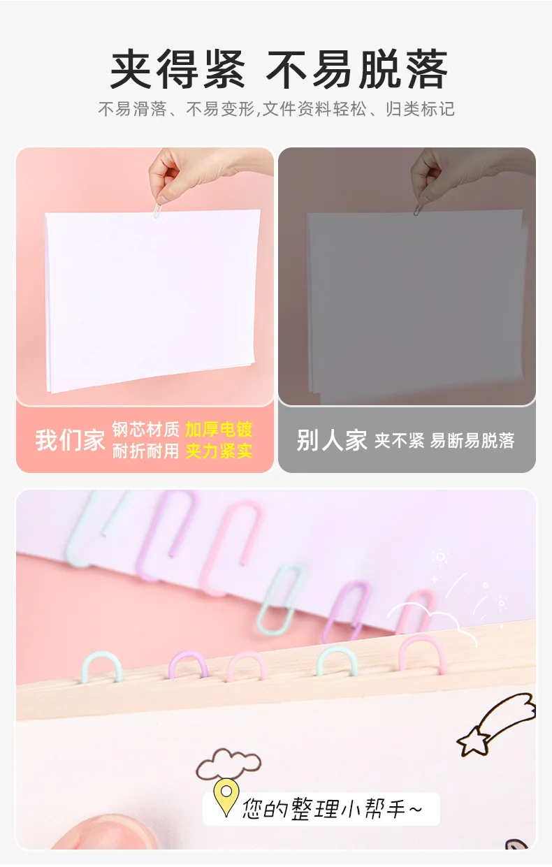 Comprar Clips de papel coloridos de piezas, suministros de oficina, marcapáginas de archivo grande, hebilla en forma de U, 100