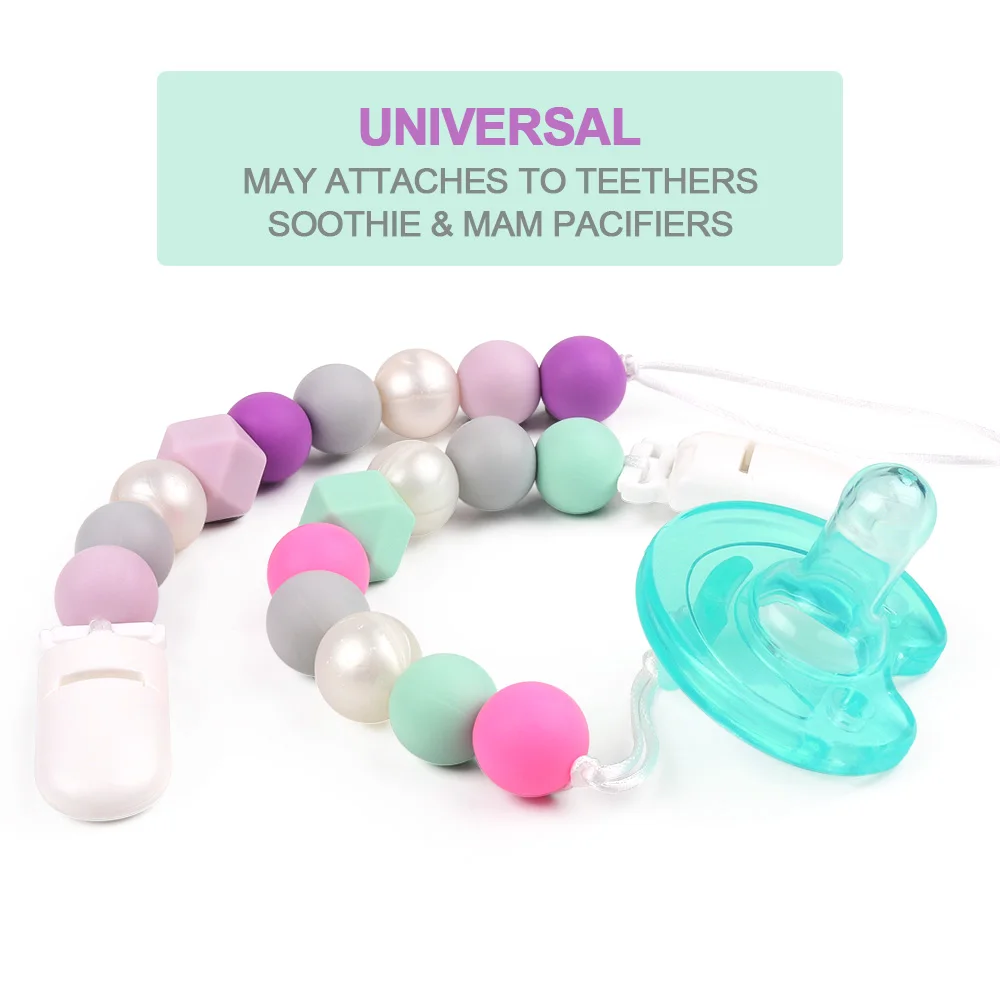 Comprar Clips de silicona para chupete de bebé, cadena de chupete con cuentas de perlas, Clip de chupete de cuentas de silicona para recién nacido, Clips de soporte de pezón simulado