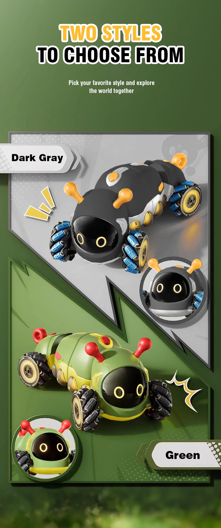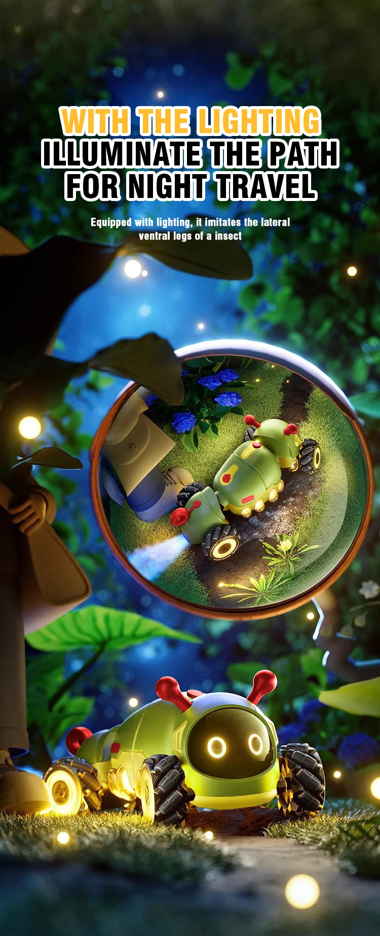 3.Fácil de controlar desde la distancia, con botones multifuncionales al alcance de su mano, rotación de 360 grados, conmutación con un solo clic, que simula la postura de torsión de un insecto y disfruta de una experiencia suave y agradable.