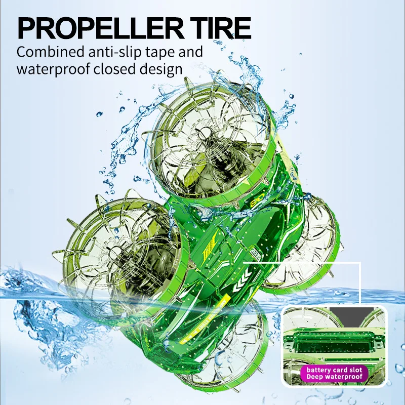 Adelante, atrás, girar hacia la izquierda, girar nuevamente, la luz del botón central se enciende/apaga (presione prolongadamente para la función de demostración con una sola tecla), se puede controlar en tierra o en agua, las partes electrónicas de la carrocería del vehículo tienen una función impermeable.
