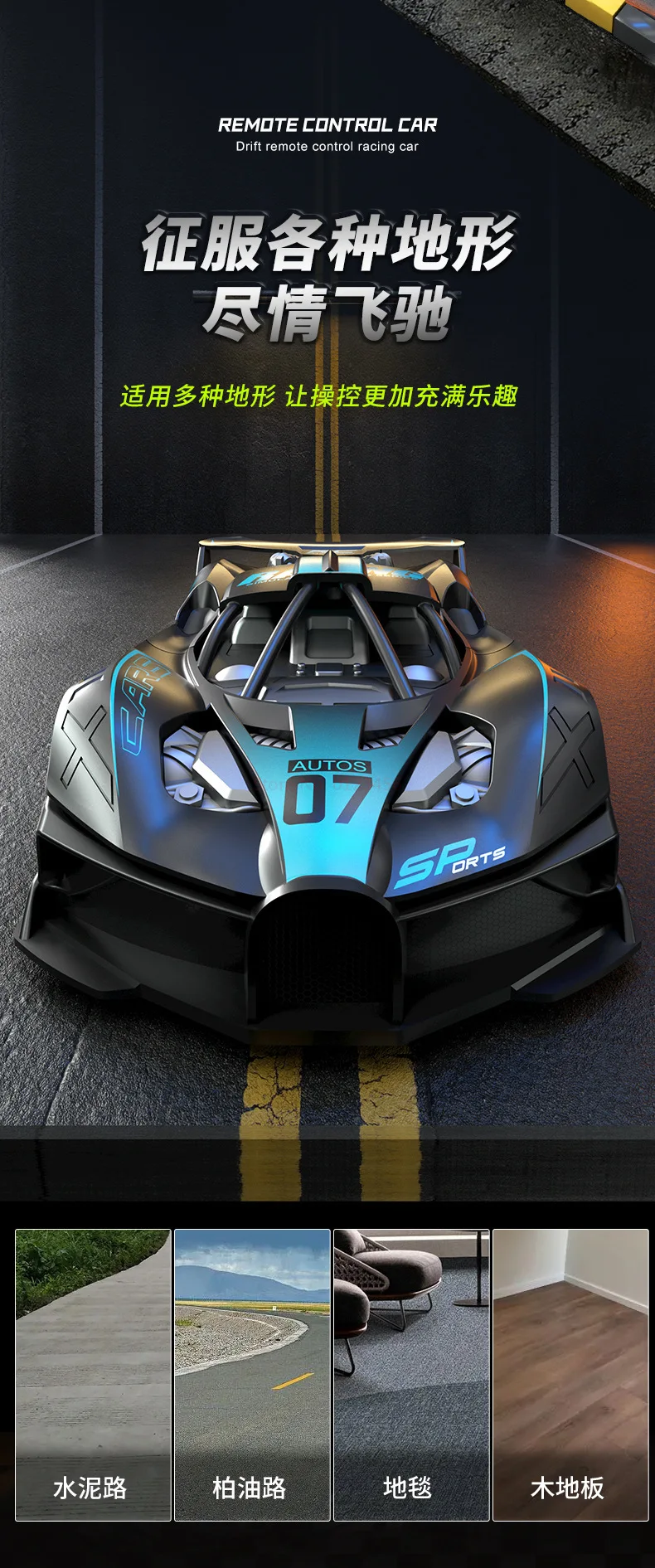 Coche de carreras Bugatti de Control remoto para niños, coche deportivo eléctrico de alta velocidad, 2,4G, resistente a caídas, regalo para niños