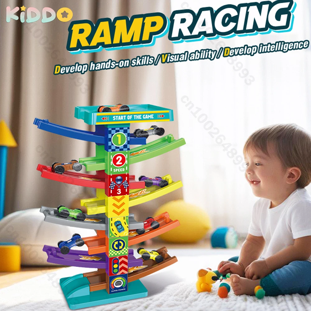 Comprar Coche de carreras de pista para niños, planeador Montessori, juguete educativo, Mini montaña rusa deslizante de inercia, rampa de carreras, vehículo, juego de juguetes, coche