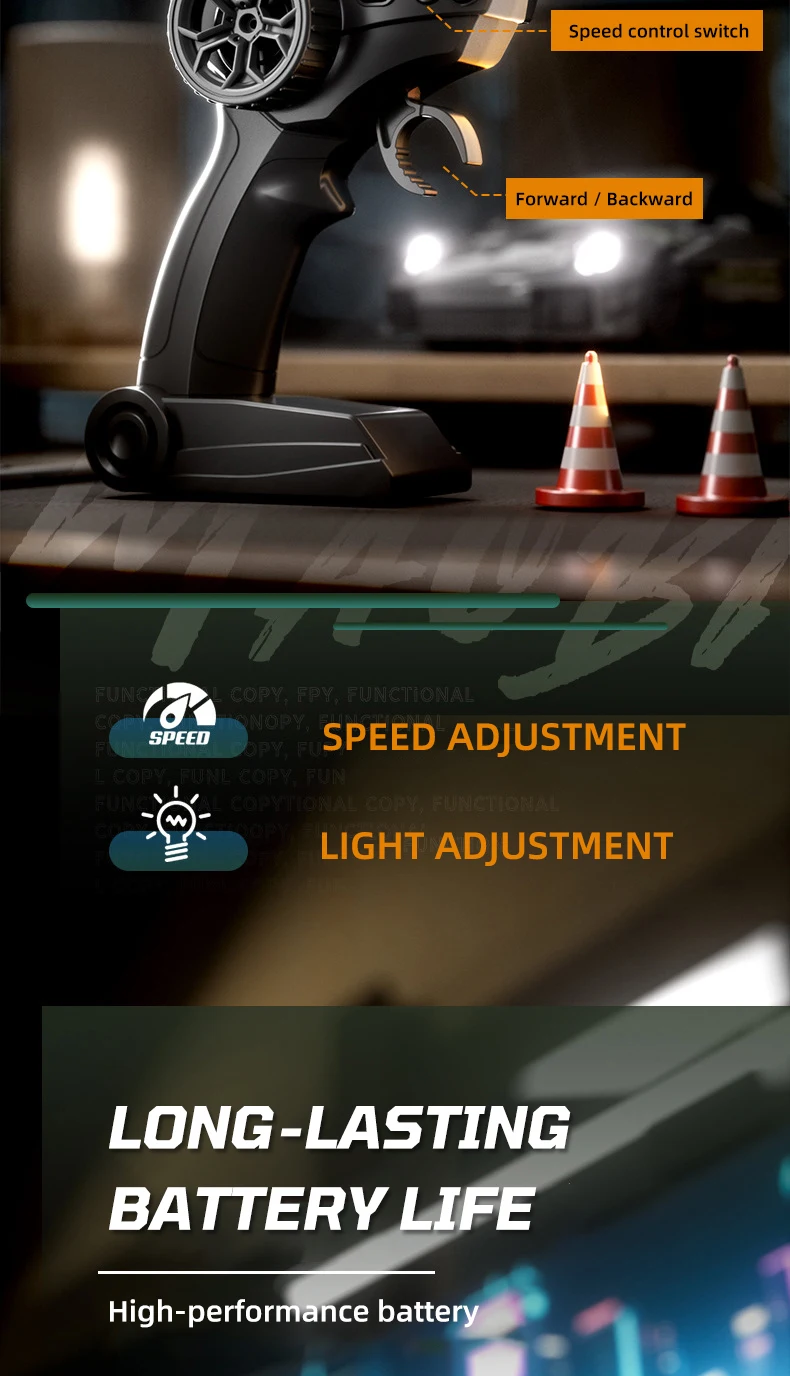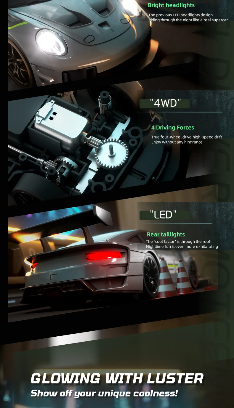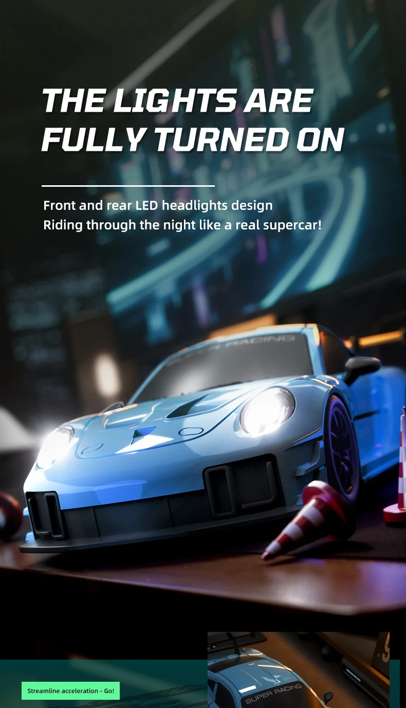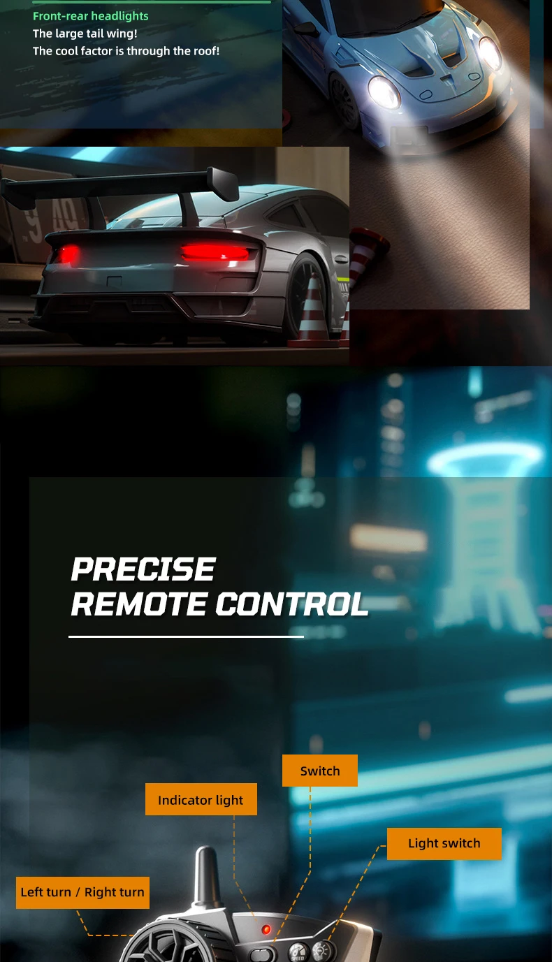 1.Luces de coche geniales, encendido y apagado ajustables, las luces traseras hacen que el juego nocturno sea más emocionante