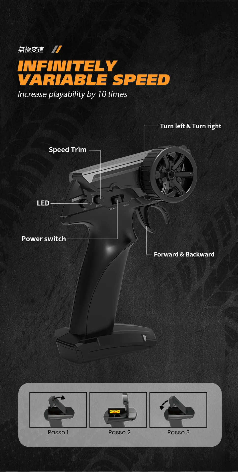 Función: adelante, atrás, girar a la izquierda, girar a la derecha, protección antiinterferencias, protección de bajo voltaje, luz ajustable, velocidad controlable