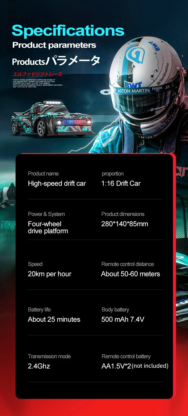Nombre: Coche de control remoto de deriva con tracción en las cuatro ruedas 1:16