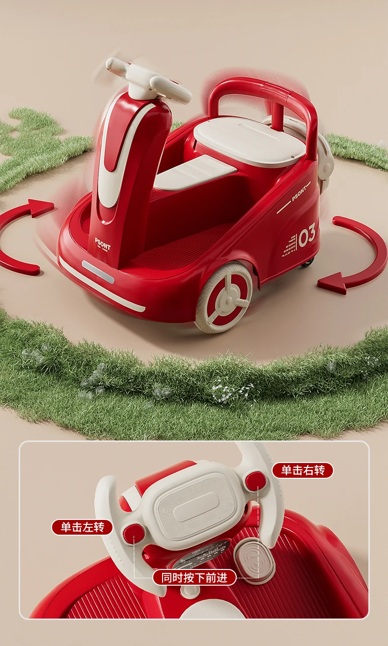 Coche de equilibrio para bebé con ruedas de deriva con Control remoto y volante LED, cochecito con batería de 5200mAh y andador para bebé