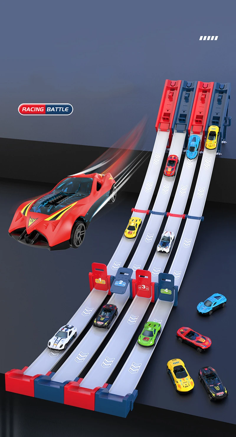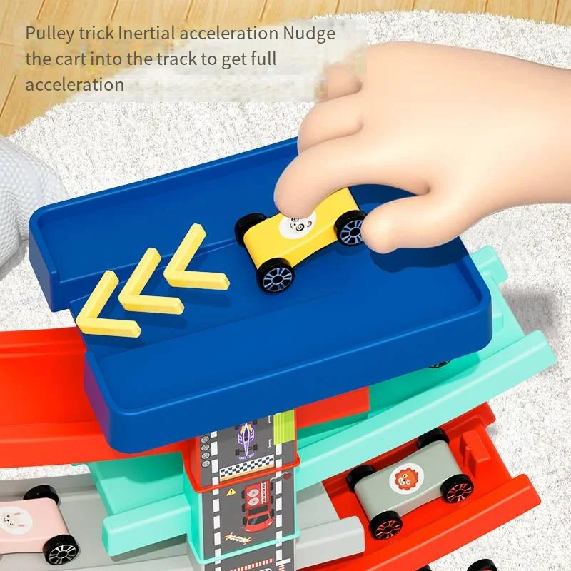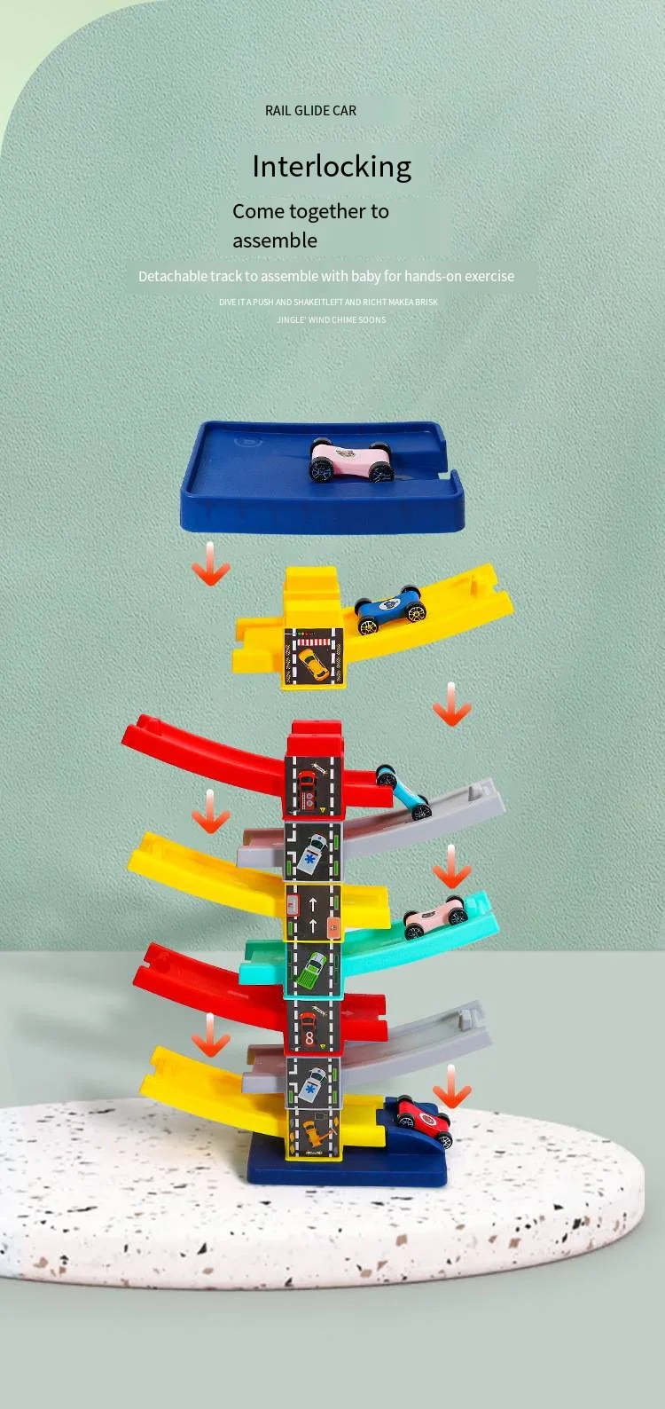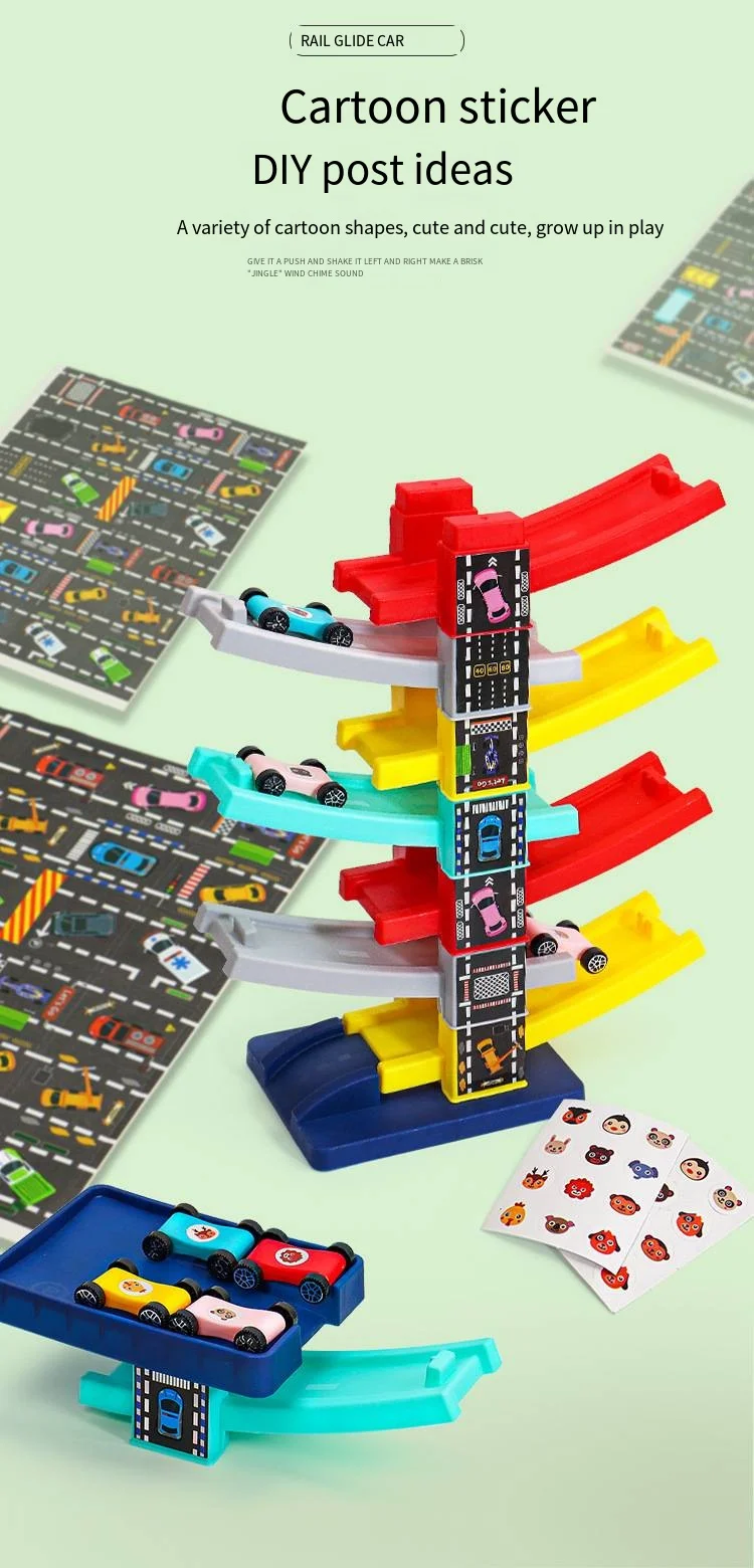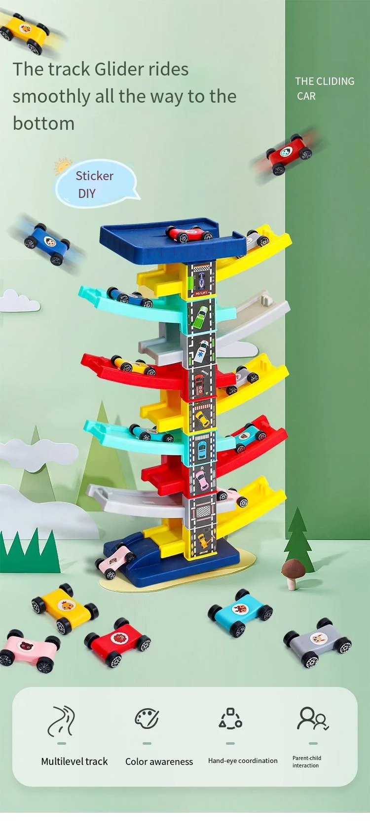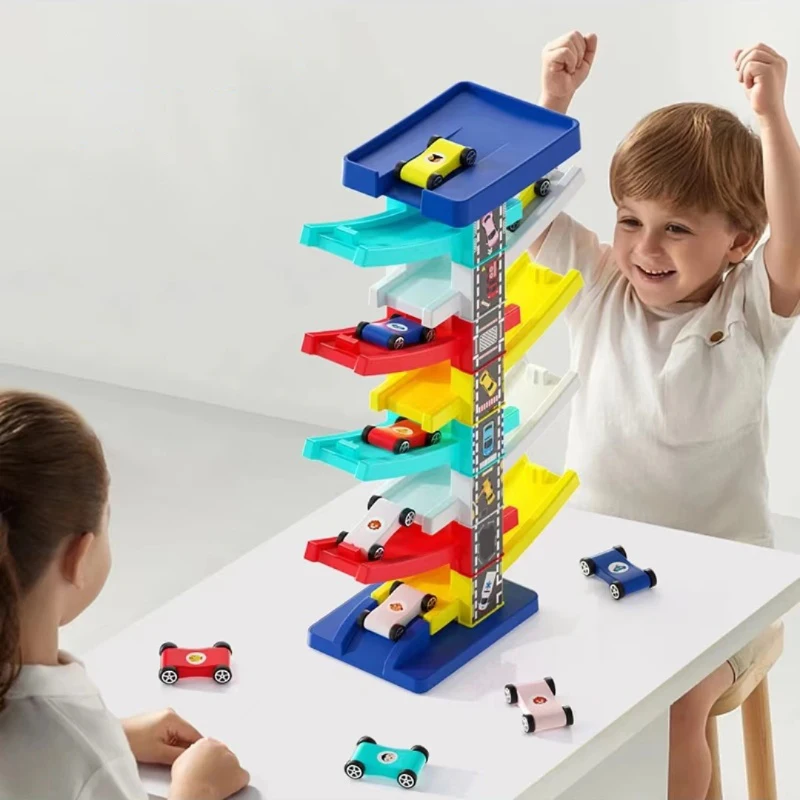El tobogán es fácil de montar y muy interesante para los niños. Incluye un tobogán y 4 coches de diferentes colores. ¡Recomiendo al vendedor!