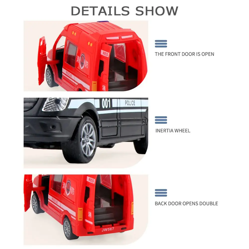 Comprar Coche de policía resistente a caídas ABS, camión de bomberos, juguete de ambulancia, superficie lisa, puerta que se puede abrir, No requiere batería, modelo de apoyo