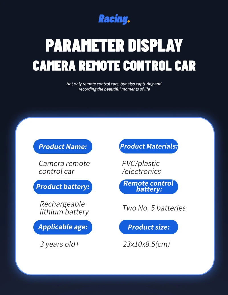 Carcasa de coche de PVC con luz.Con cámara HD