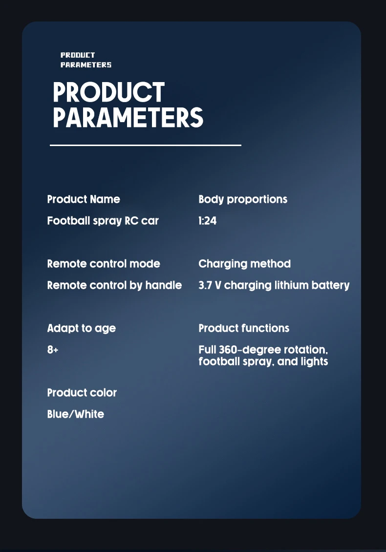 Nombre del producto: Carro de fútbol en aerosol con control remoto