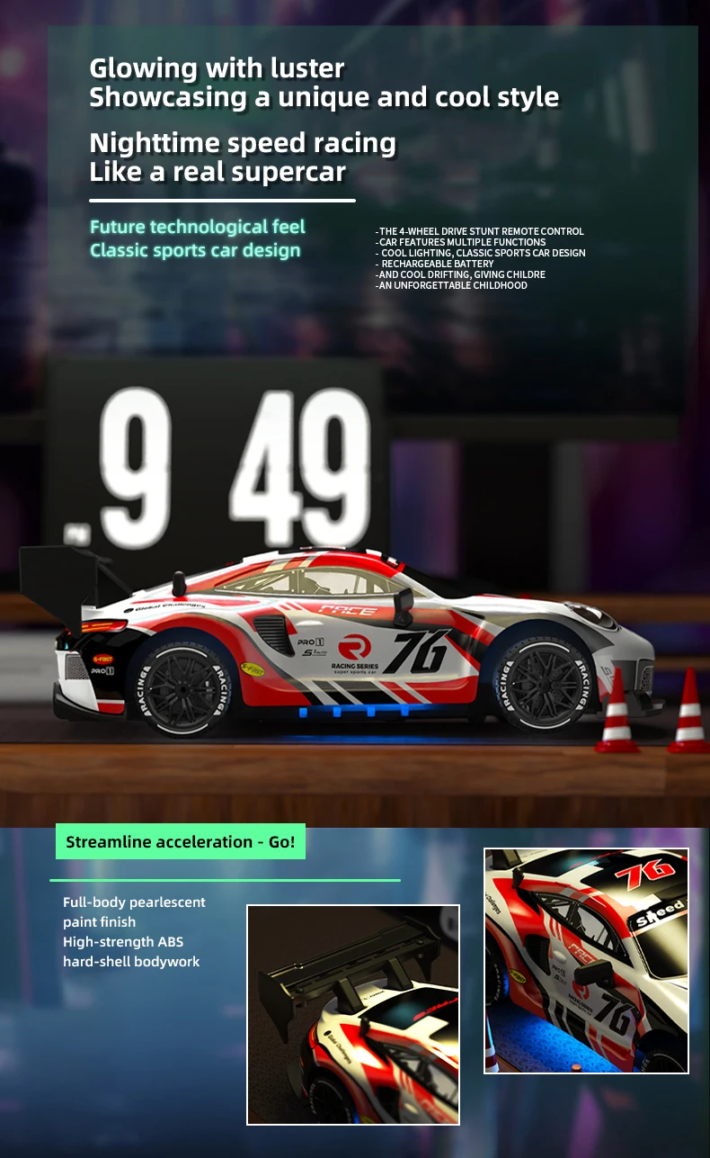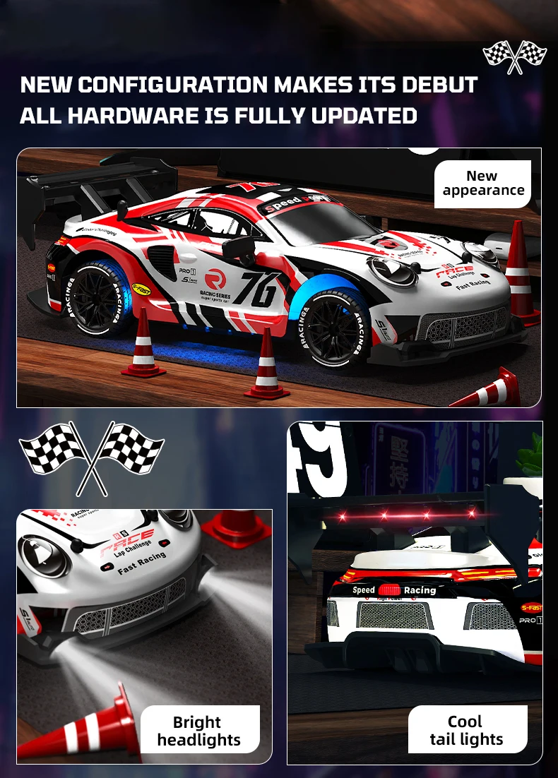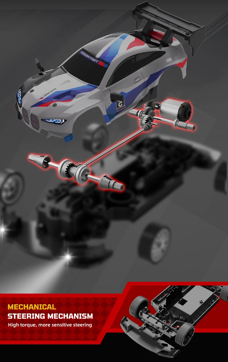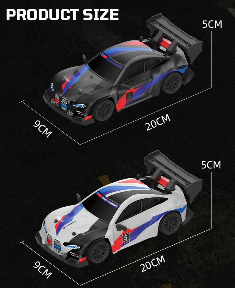 1. Este diseño exquisito de coche de deriva con control remoto 4WD de alta velocidad restaura la diversión de la deriva real de carreras y la conducción rápida, acelera hasta 20 KM/H, le brinda una experiencia de carreras de alta velocidad más realista.La parte delantera del coche tiene luces geniales, la conducción nocturna es más atractiva.