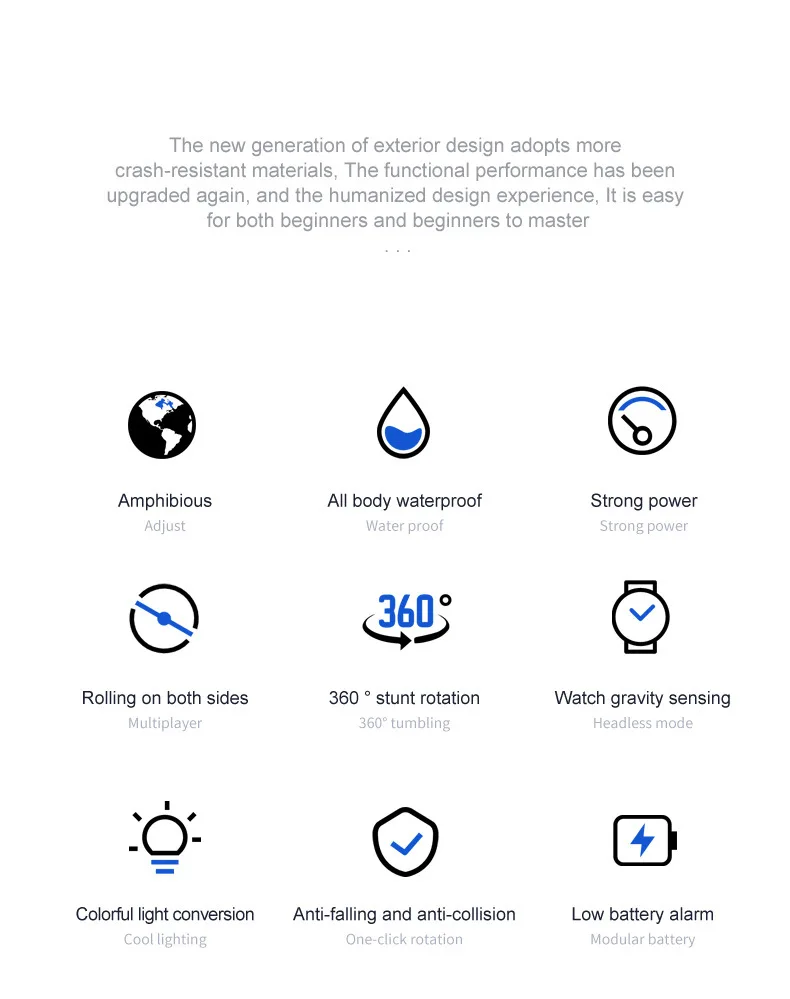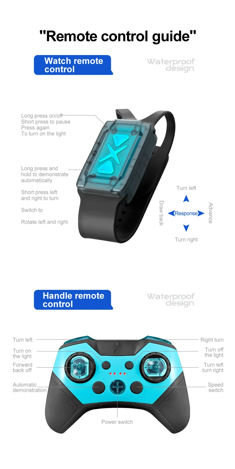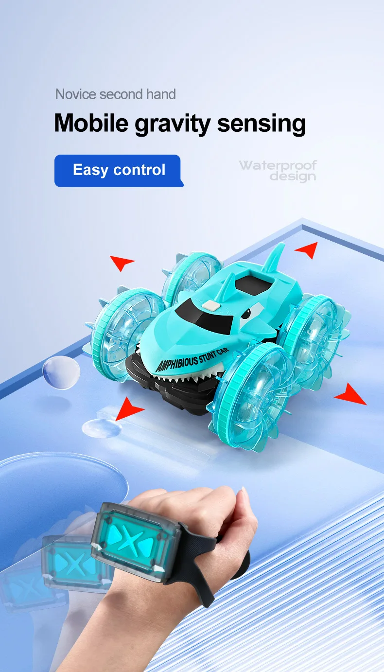 [Coche acrobático RC con detección de gestos con luces]: el coche con control remoto acrobático incluye un reloj resistente al agua con control de gestos.Realice acrobacias de 360 grados sin esfuerzo moviéndose