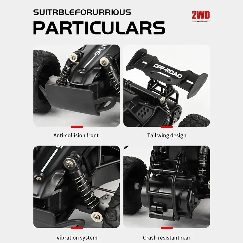 Comprar Coche todoterreno de alta velocidad, 25 KM/H, 1-3 baterías, Control remoto, faro LED sin escobillas, 2WD, 1/16, camión de juguete para niños, Gif