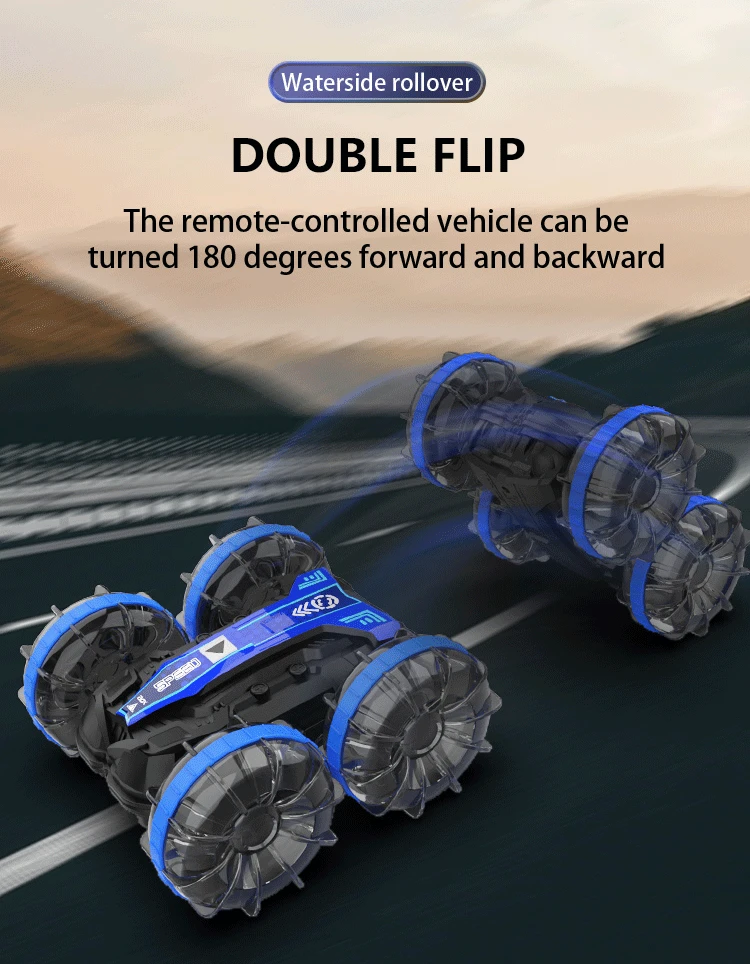 Luces de colores fríos, también puede disfrutar jugando por la noche, salida de alta potencia, fuerte cuatro unidades, caminar a través de varios obstáculos, conducción de control multidireccional, el anfibio puede completar la rotación de acrobacias, doble cara,
