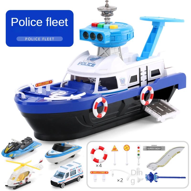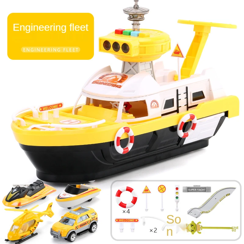 Juguetes para niños, pista de simulación, barco de inercia, moldes a presión y vehículos de juguete, cuentos de música, juguete ligero, modelo de barco, coche de estacionamiento, juguetes para niños