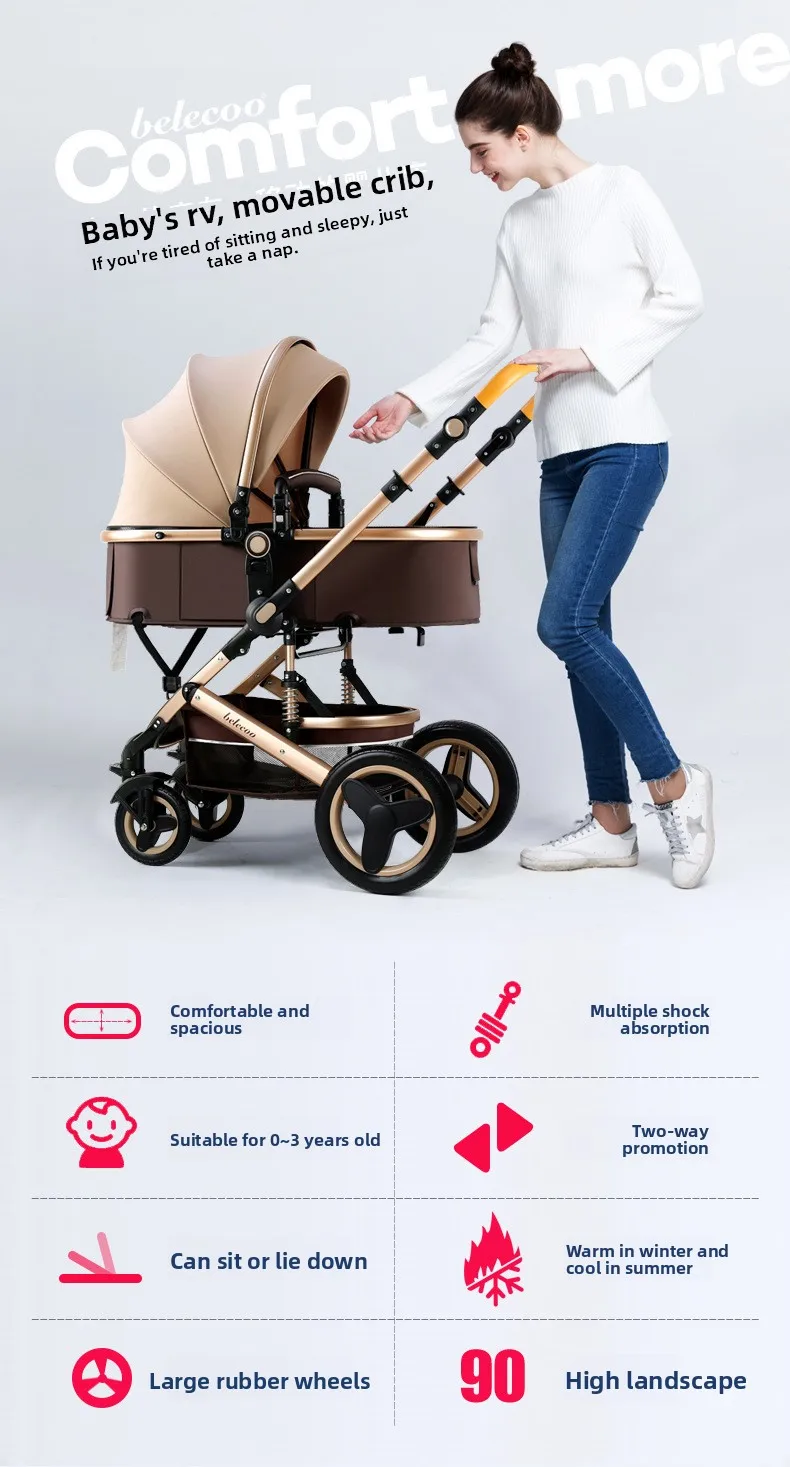 Cochecito Asiento bidireccional y carrito ligero plegable que absorbe los golpes